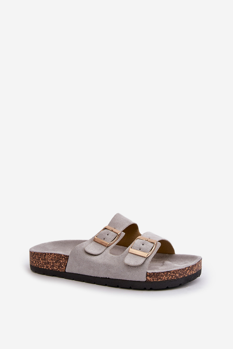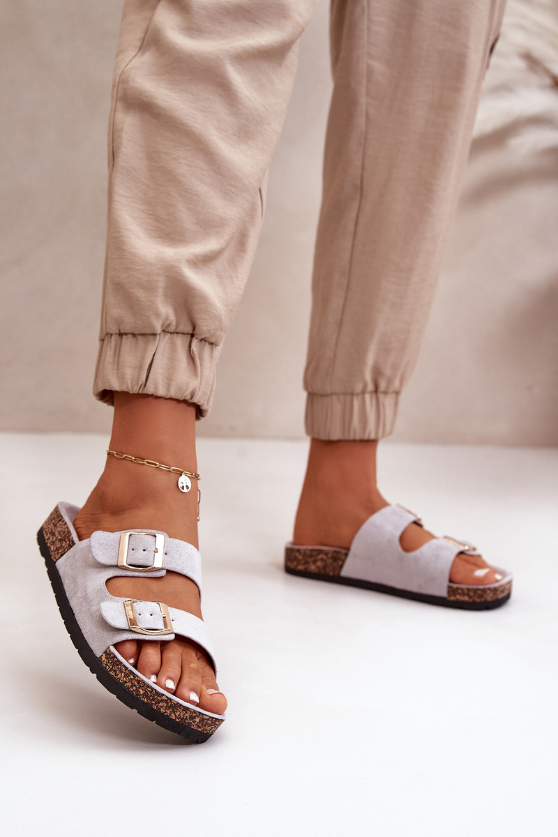 Damskie Klapki Wsuwane Na Korkowej Podeszwie Szare Cortina