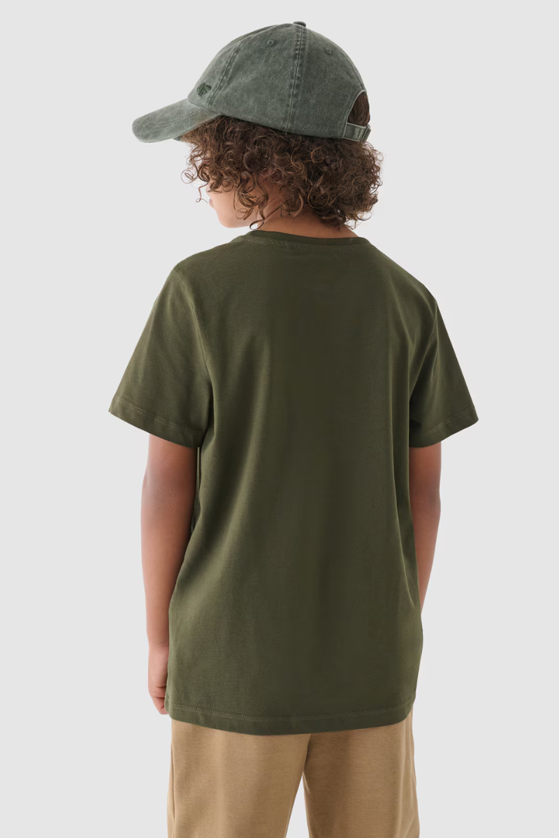 Chłopięcy T-shirt Gładki Bawełniany Khaki 4F 4FJWMM00TTSHM1626-43S