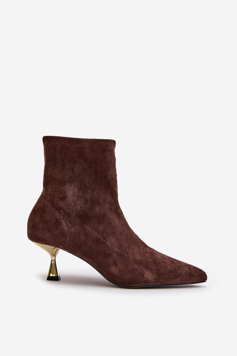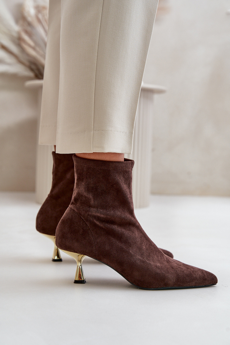 Botki Damskie Na Szpilce Eko Zamszowe Z Noskami W Szpic Brązowe Irithare