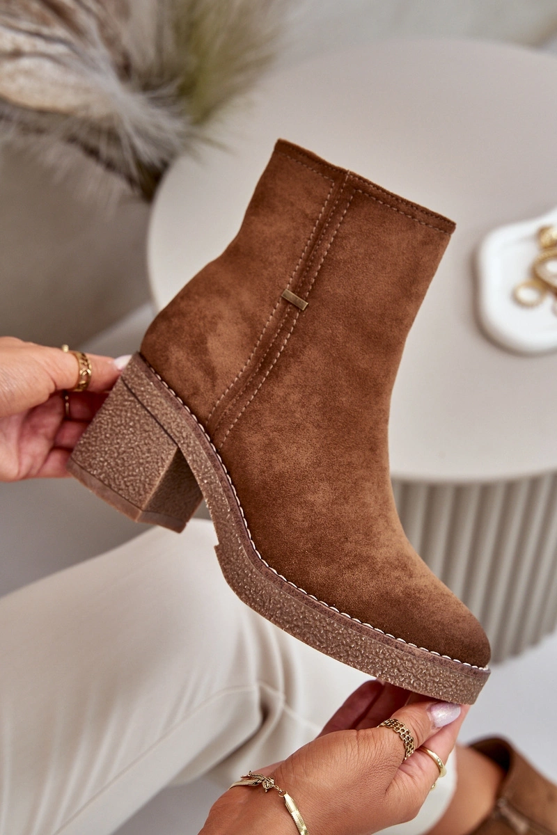 Botki Damskie Na Słupku Ocieplane Eko Zamszowe Khaki Arkesia