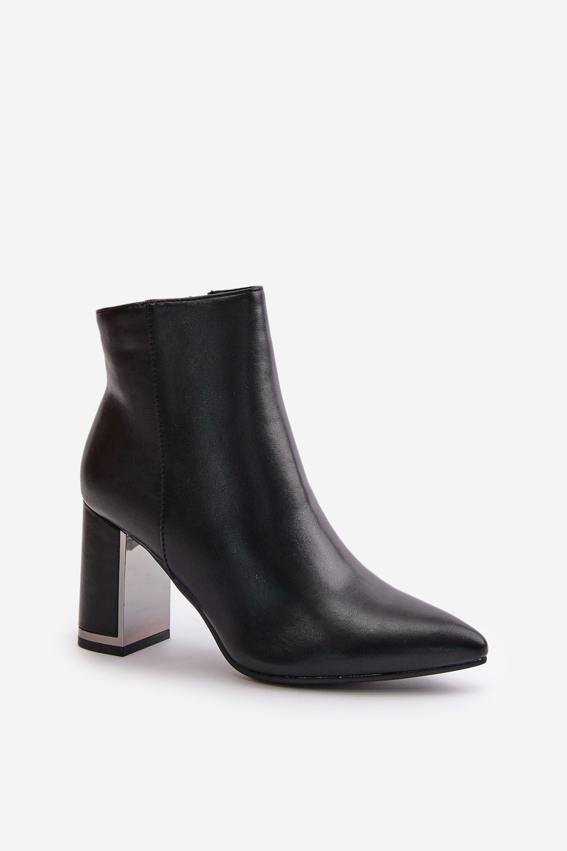 Botki Damskie Na Słupku Zapinane Na Zamek Ocieplane Eko Skórzane Czarne Mevair