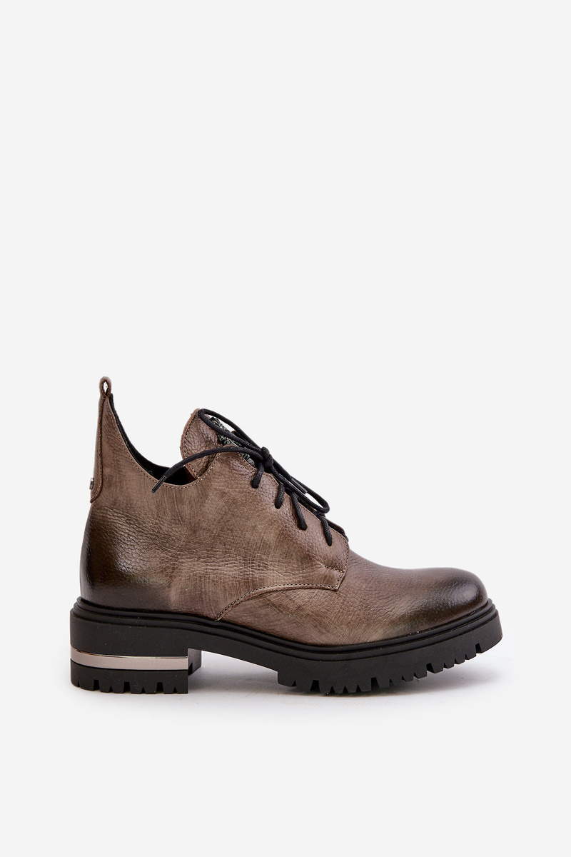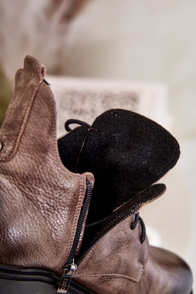 Zazoo 60309 Damskie Skórzane Botki Na Płaskim Obcasie Ciemnobeżowe