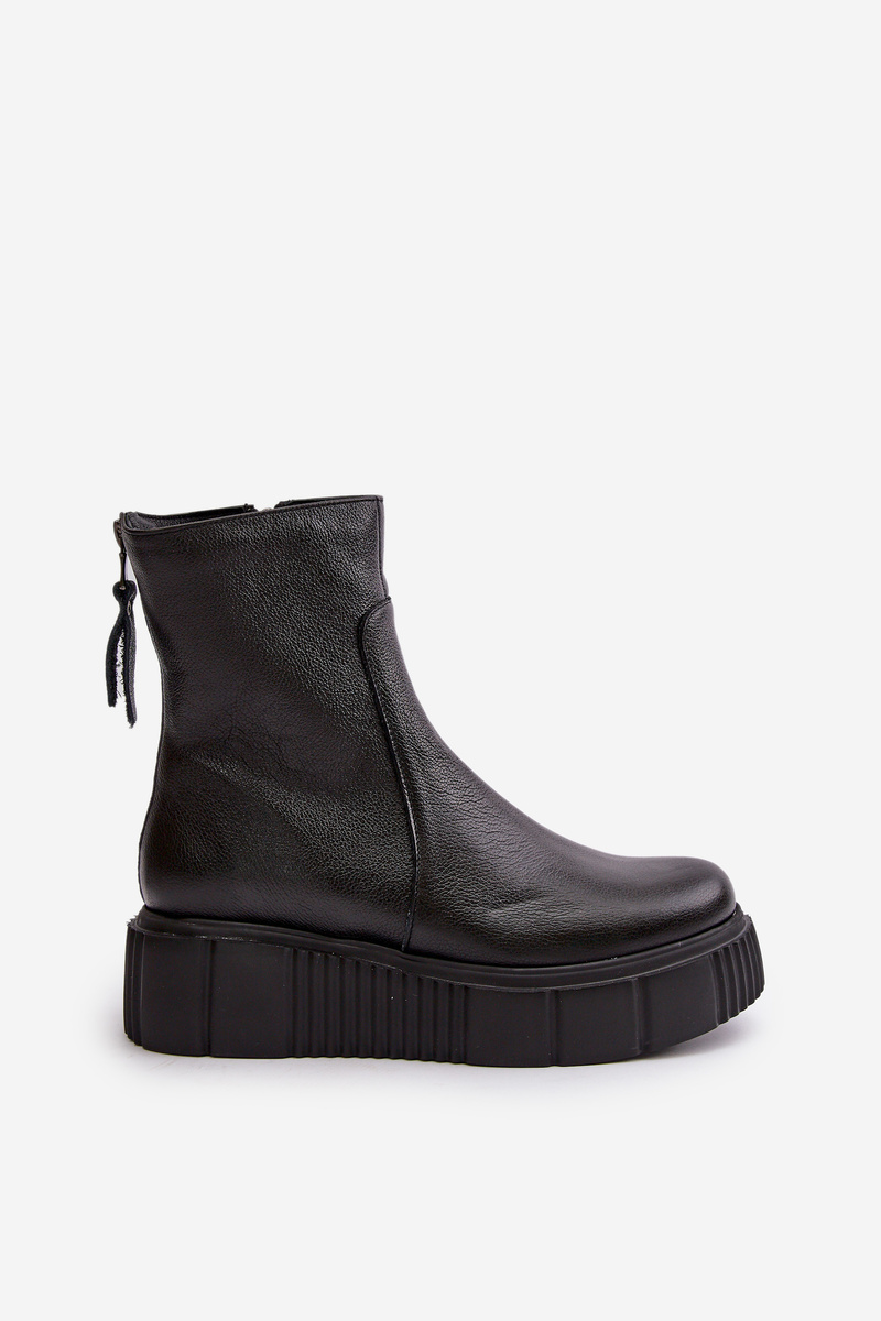 Zazoo 60369 Damskie Skórzane Botki Na Platformie Czarne