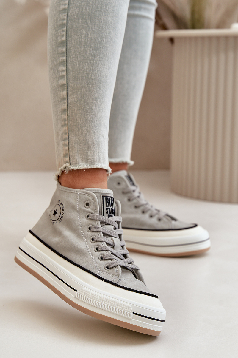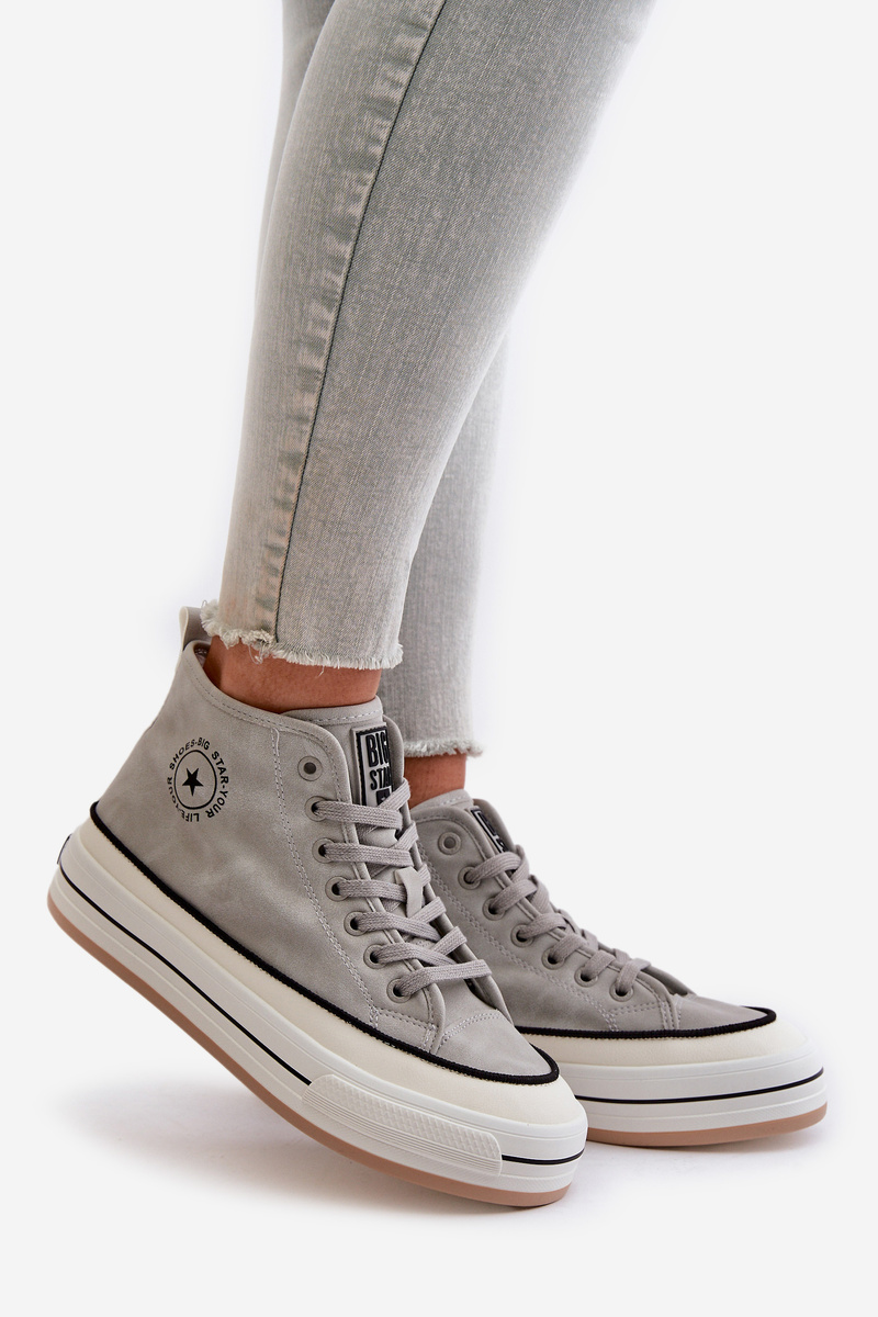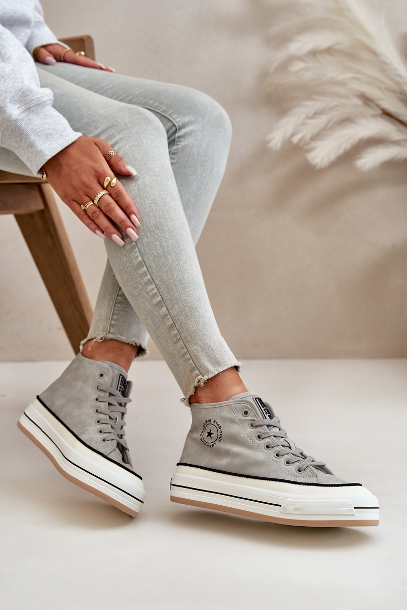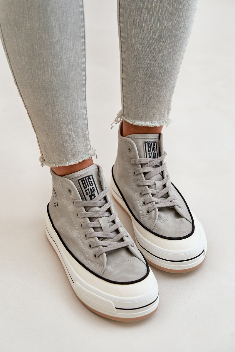 Ocieplane Trampki Damskie Na Platformie Eko Skórzane Big Star OO274070 Szare