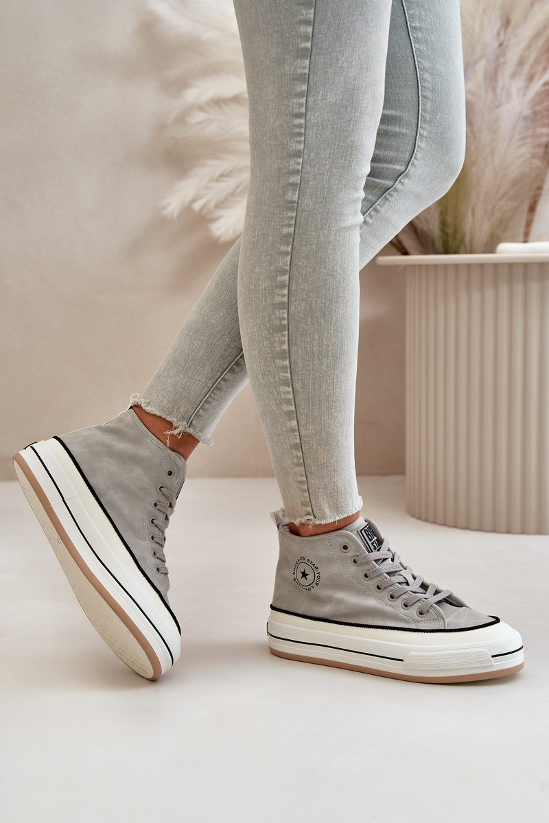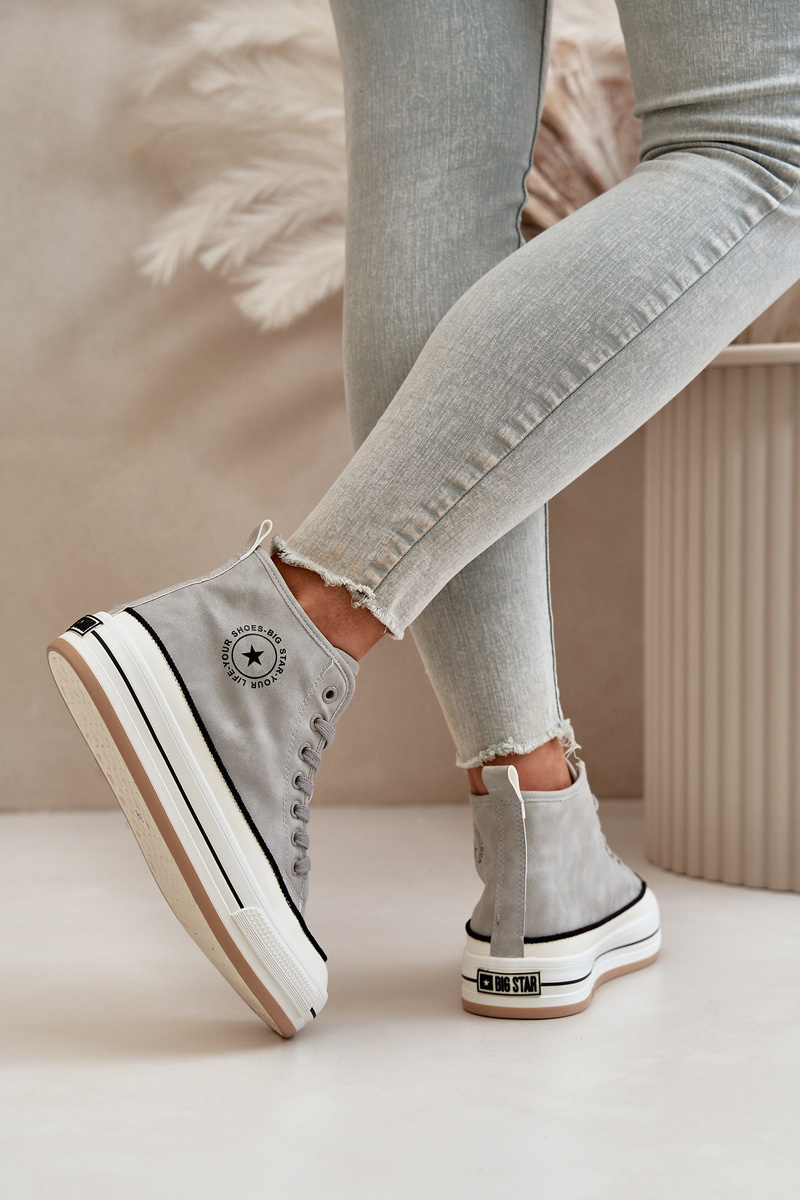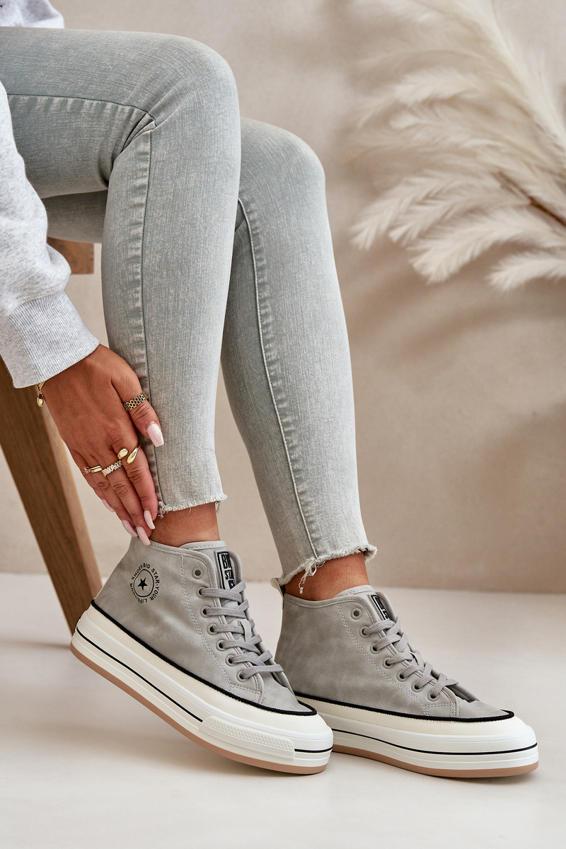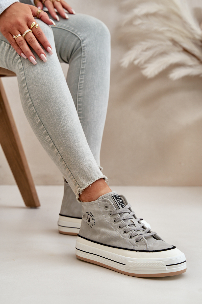 Ocieplane Trampki Damskie Na Platformie Eko Skórzane Big Star OO274070 Szare