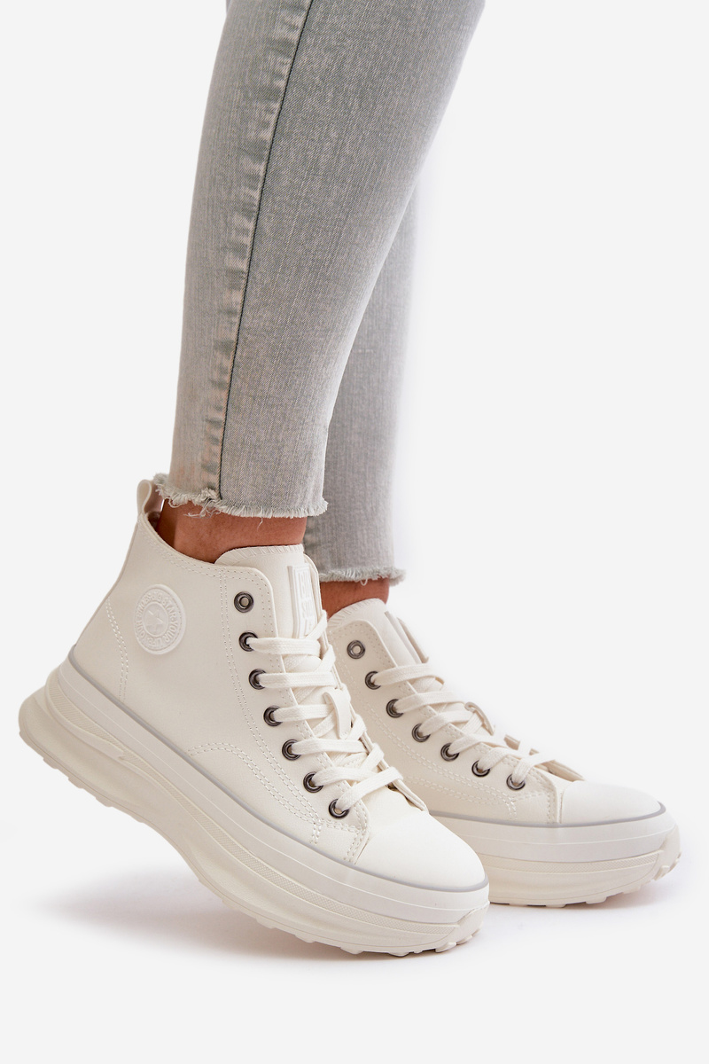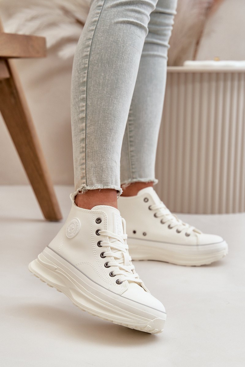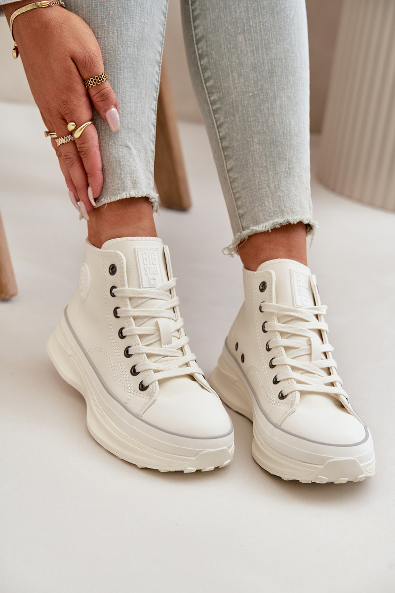 Trampki Damskie Na Platformie Eko Skórzane Big Star OO274064 Białe