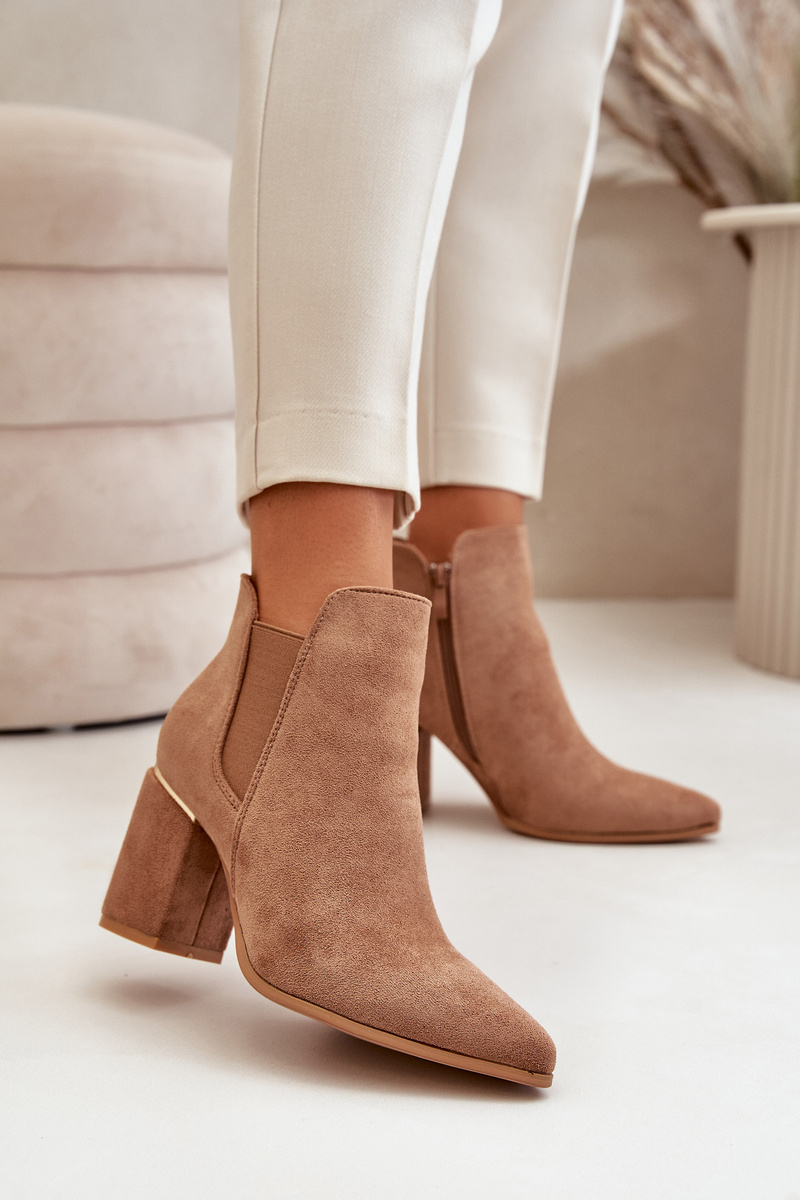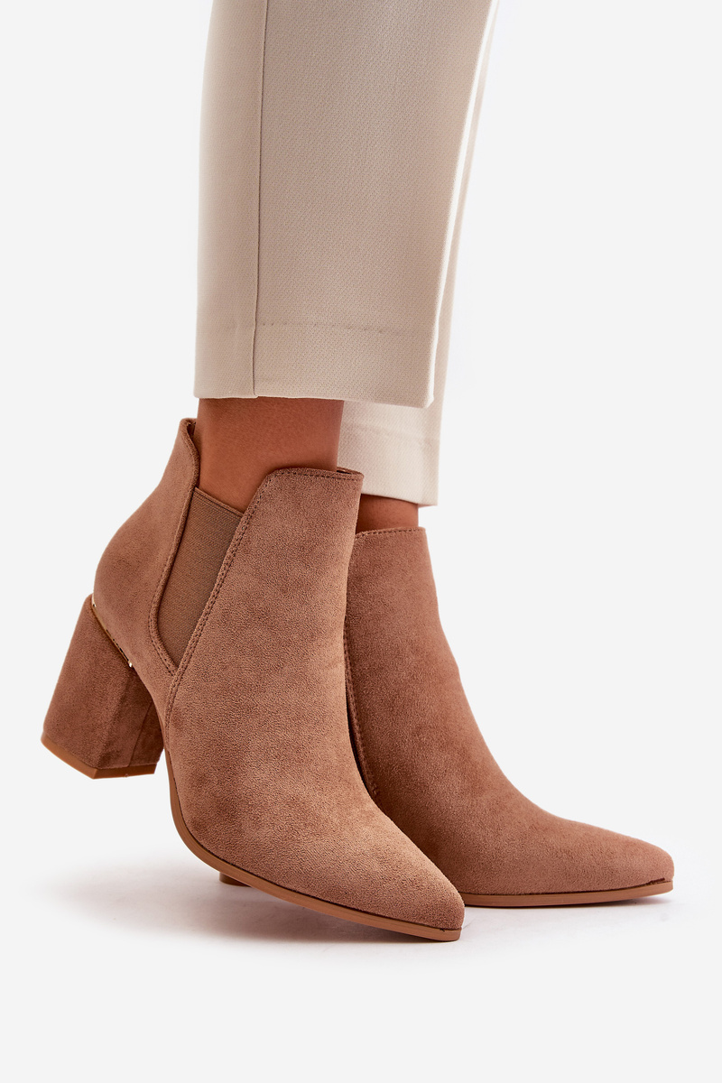 Eko Zamszowe Botki Na Słupku Ocieplane Brązowe Daivine