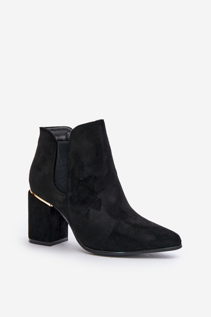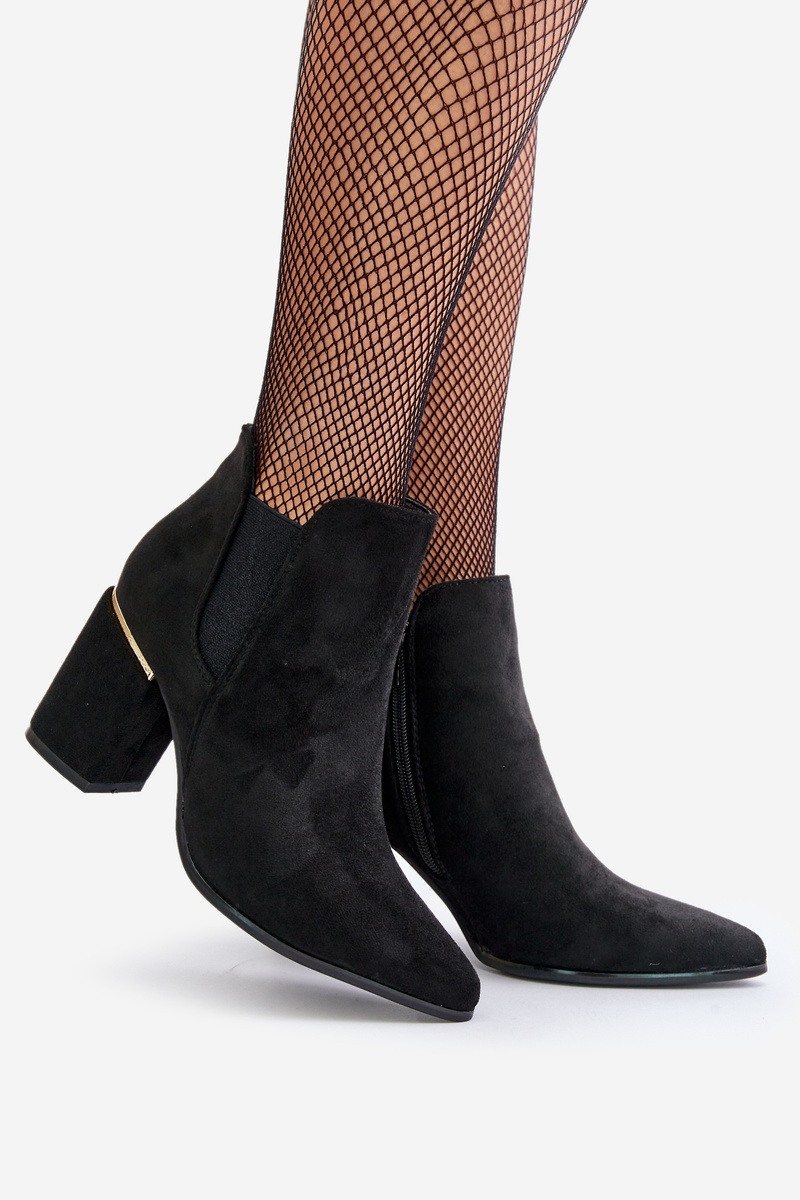Eko Zamszowe Botki Na Słupku Ocieplane Czarne Daivine