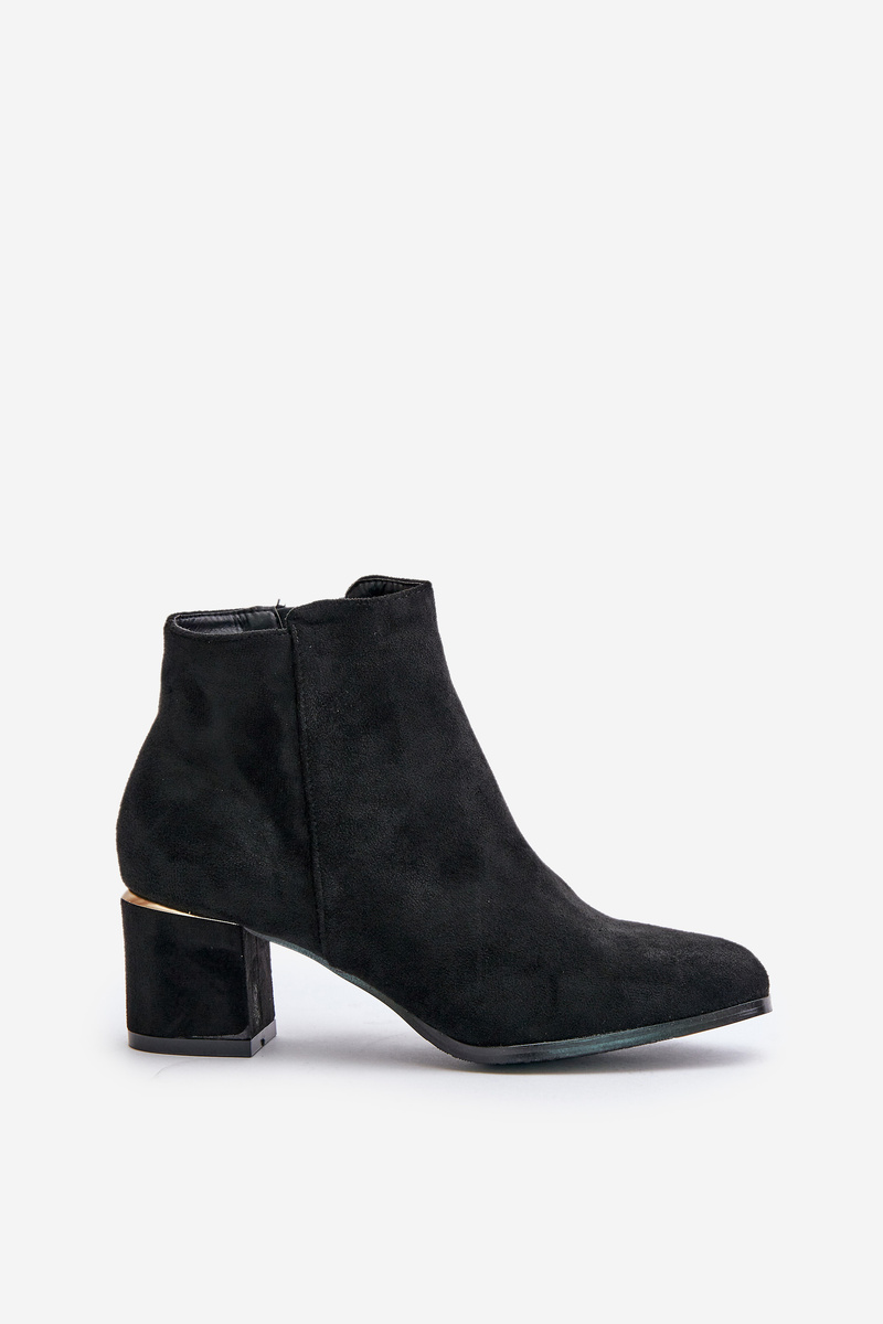Eko Zamszowe Botki Na Słupku Zapinane Na Zamek Czarne Sairis