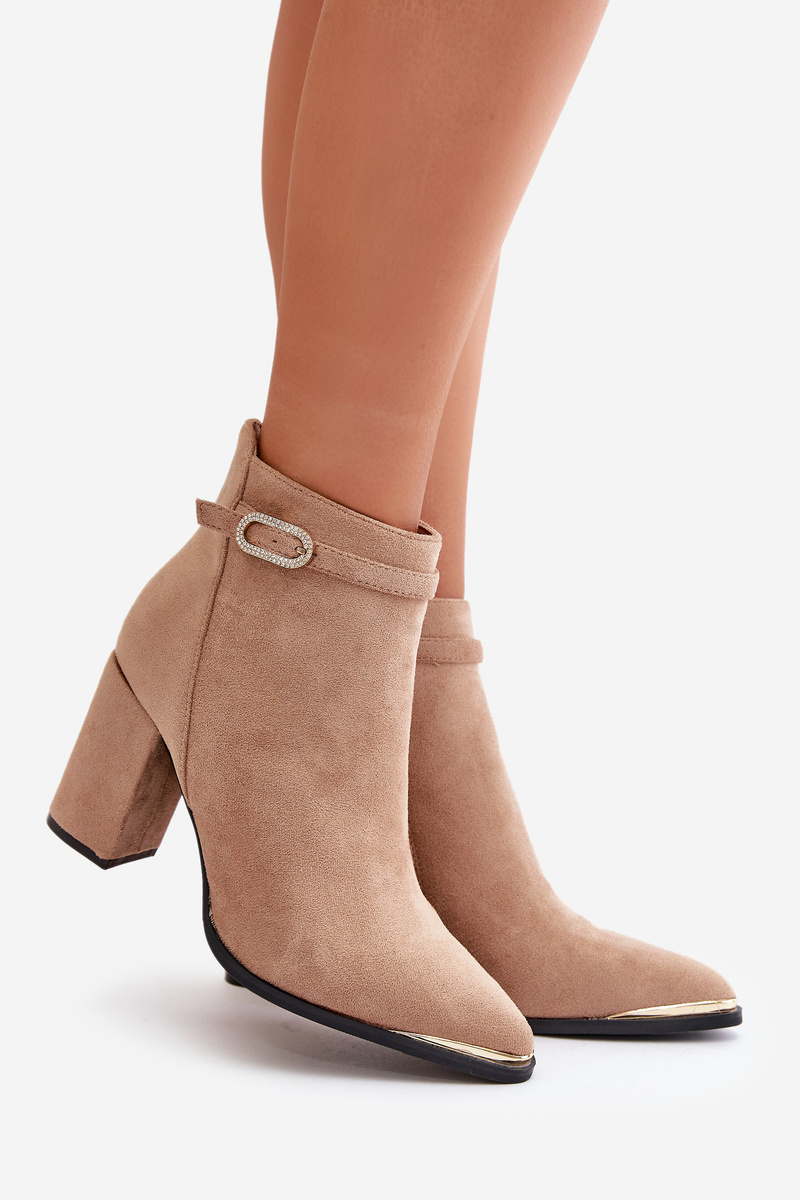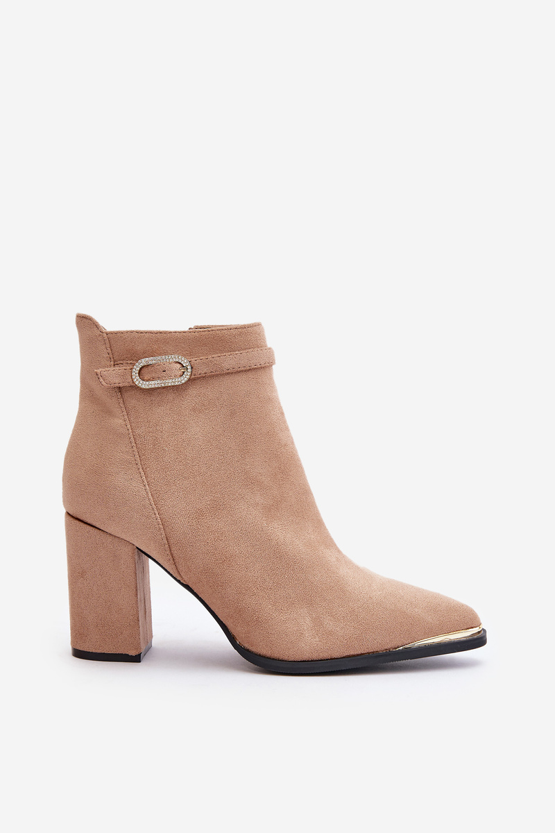 Ocieplane Botki Damskie Z Noskami W Szpic Na Słupku Beżowe Laoreina