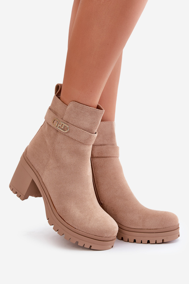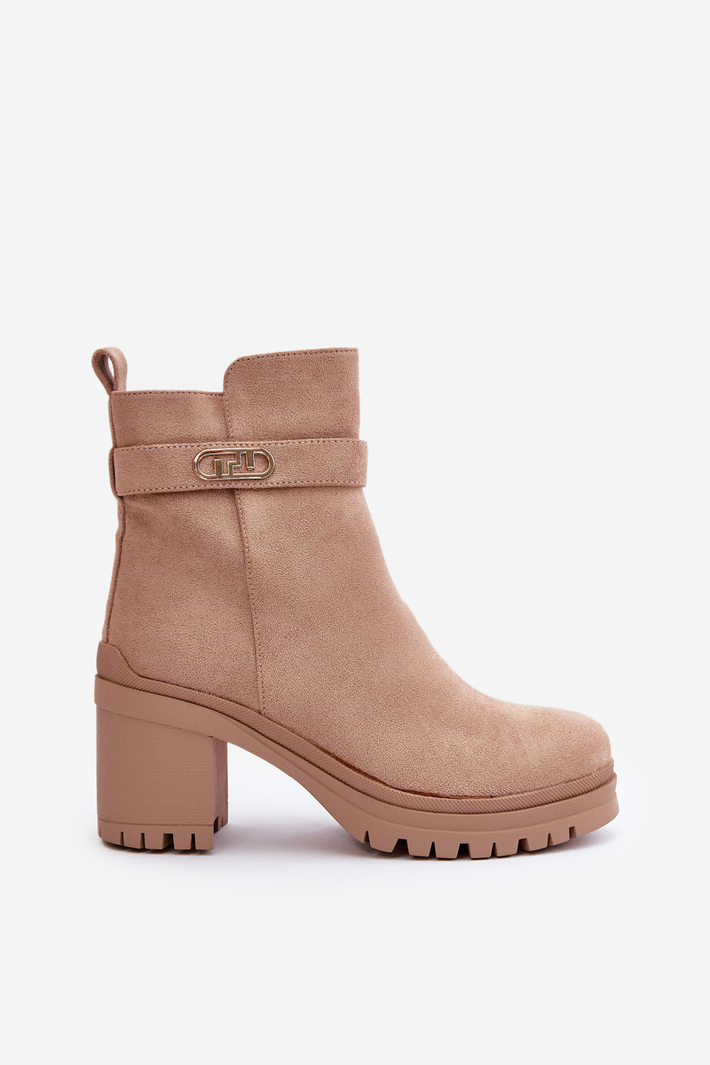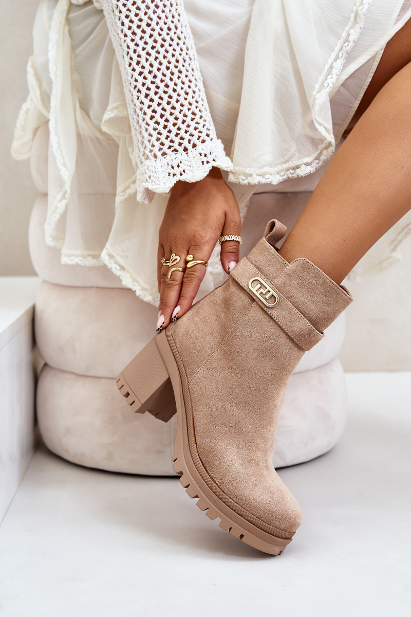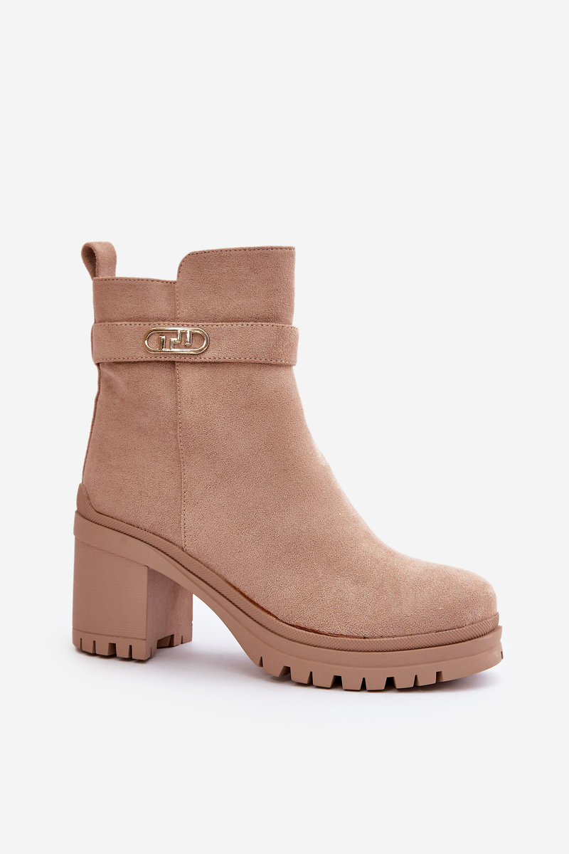 Botki Damskie Na Słupku Eko Zamszowe Ocieplane Na Zamek Beżowe Laonora