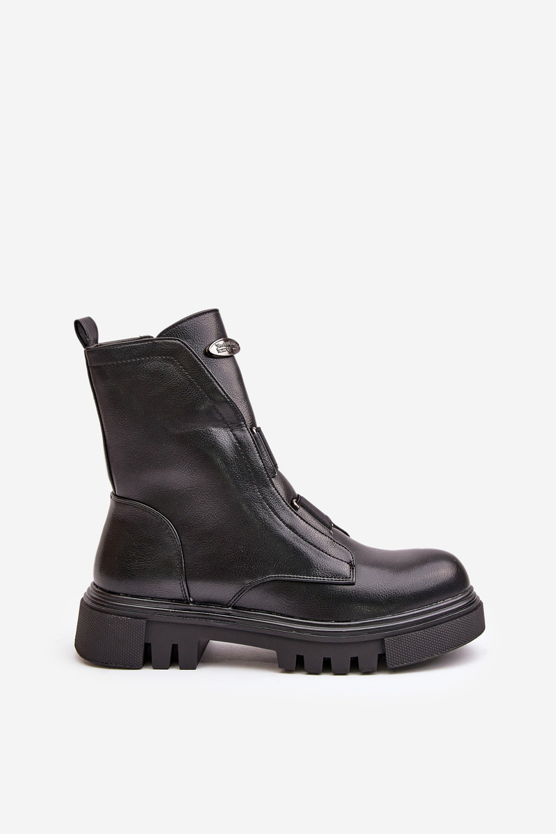 Ocieplane Botki Workery Damskie Na Zamek Eko Skórzane Czarne Mailyra