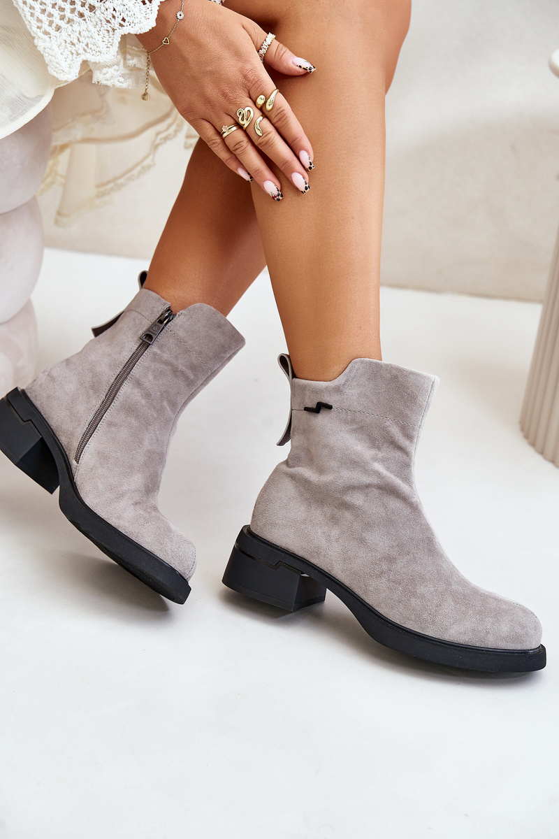 Ocieplane Botki Damskie Z Naturalnego Zamszu Na Zamek Szare Vinceza 66696