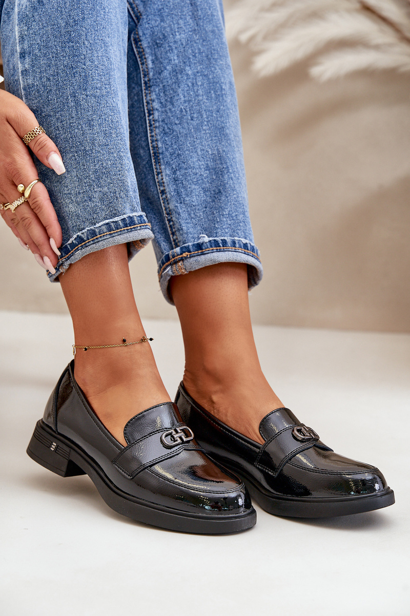 Lakierowane Mokasyny Damskie Ze Skóry Naturalnej Czarne Vinceza 58409