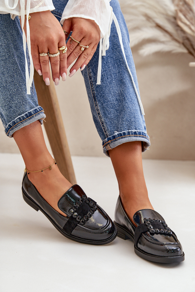 Lakierowane Mokasyny Damskie Z Ozdobą Czarne Vinceza 58389