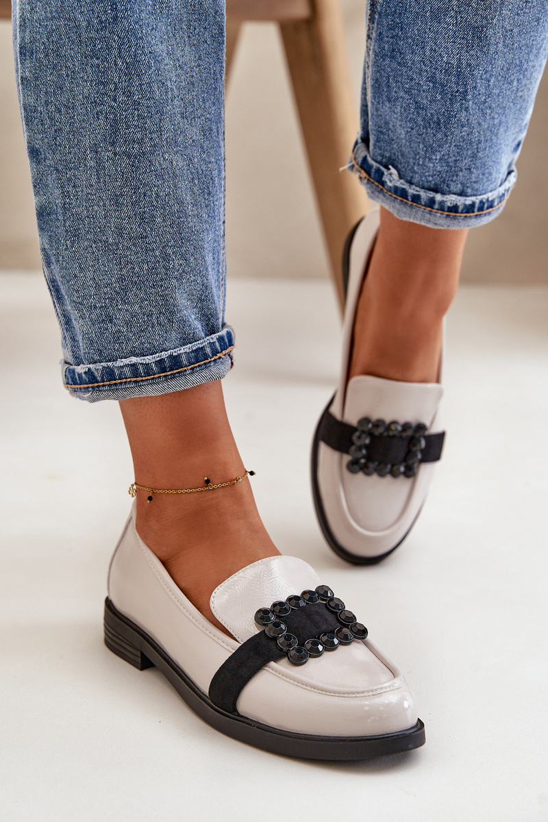 Lakierowane Mokasyny Damskie Z Ozdobą Jasnoszare Vinceza 58389