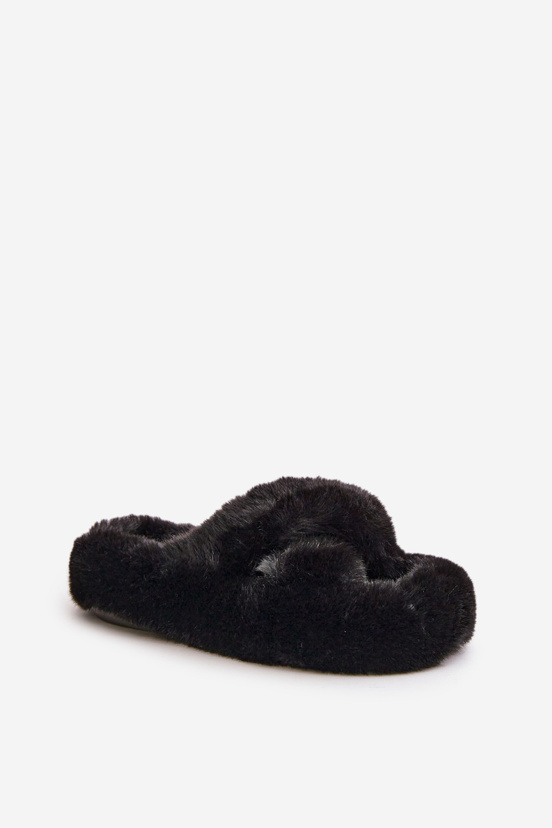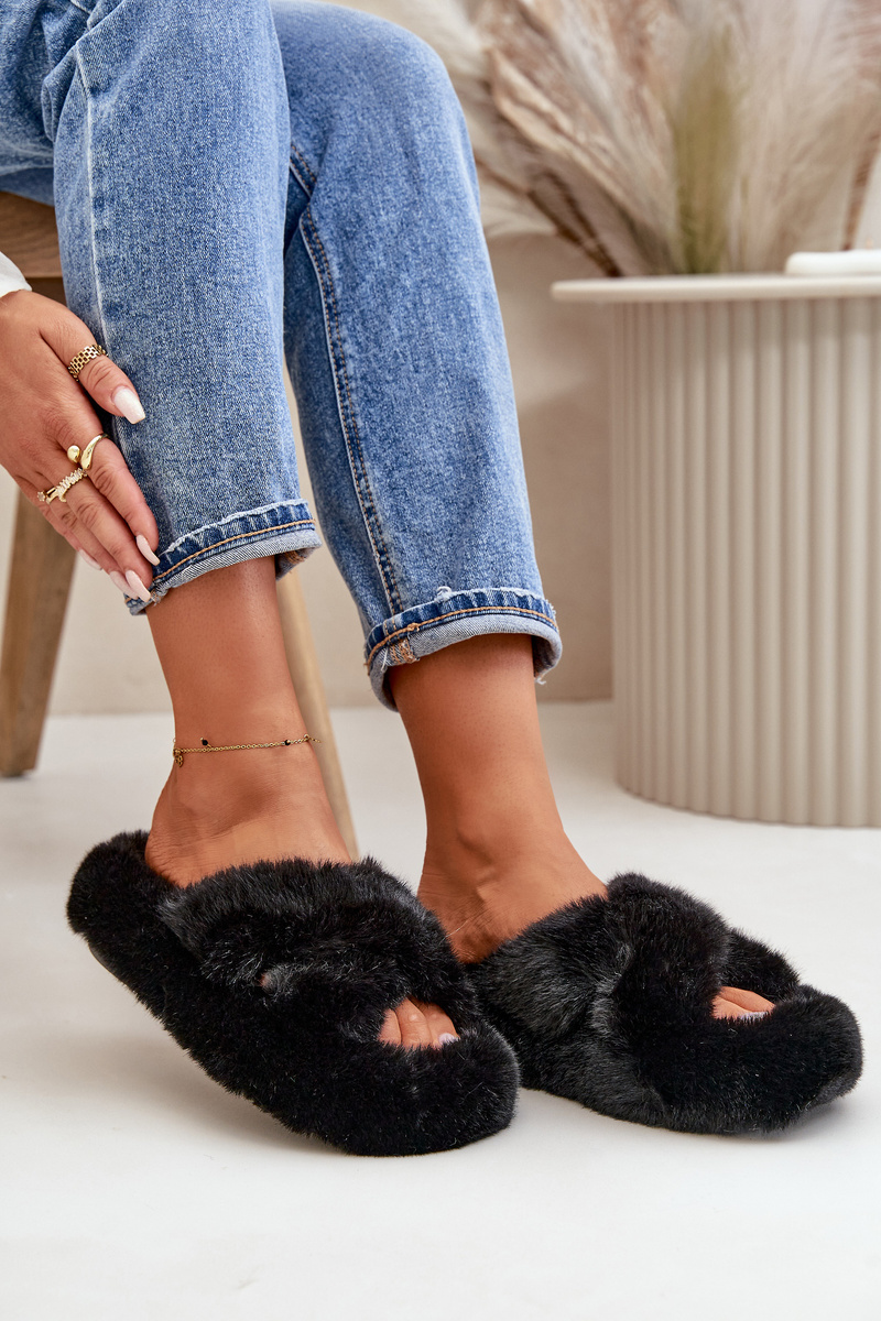 Futrzane Kapcie Damskie Na Grubej Podeszwie Czarne Lavitera