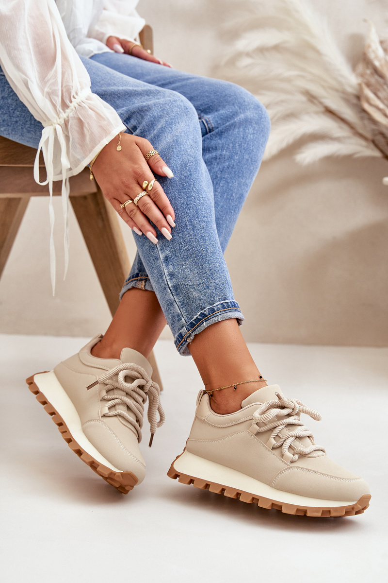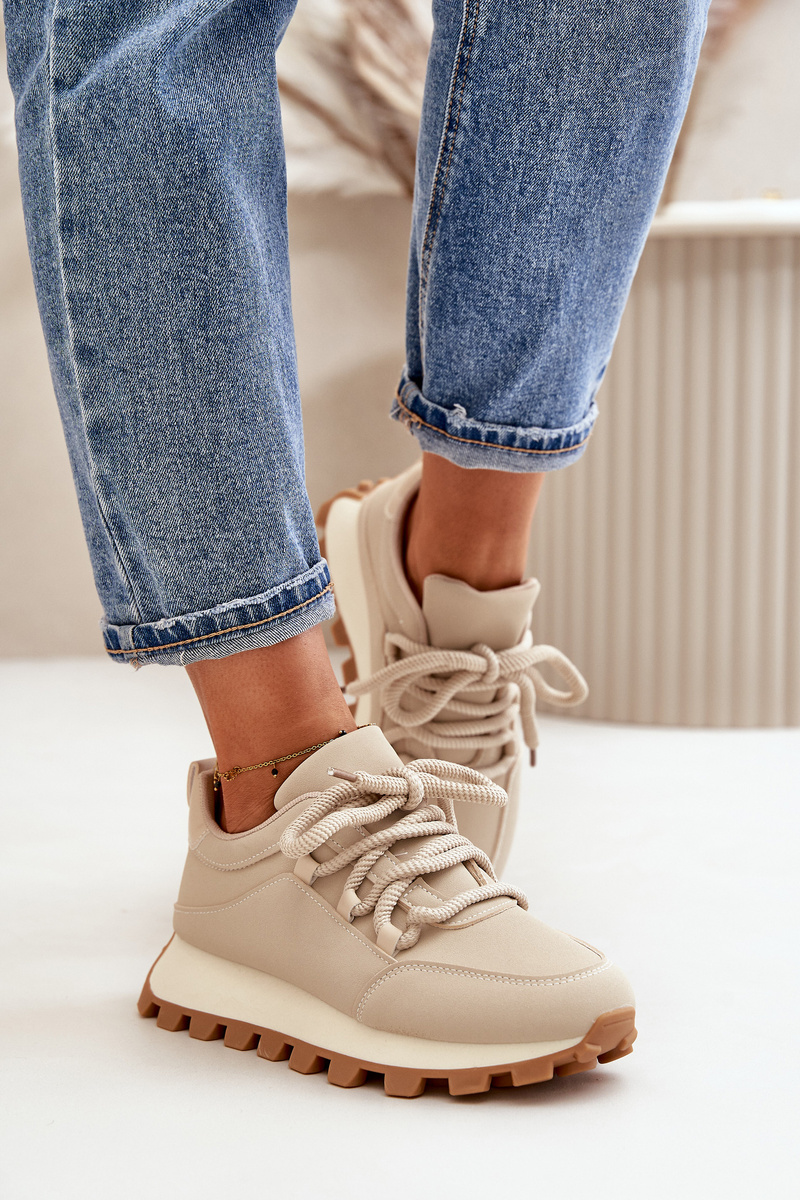 Buty Sportowe Sneakersy Na Platformie Z Eko Skóry Beżowe Riadella