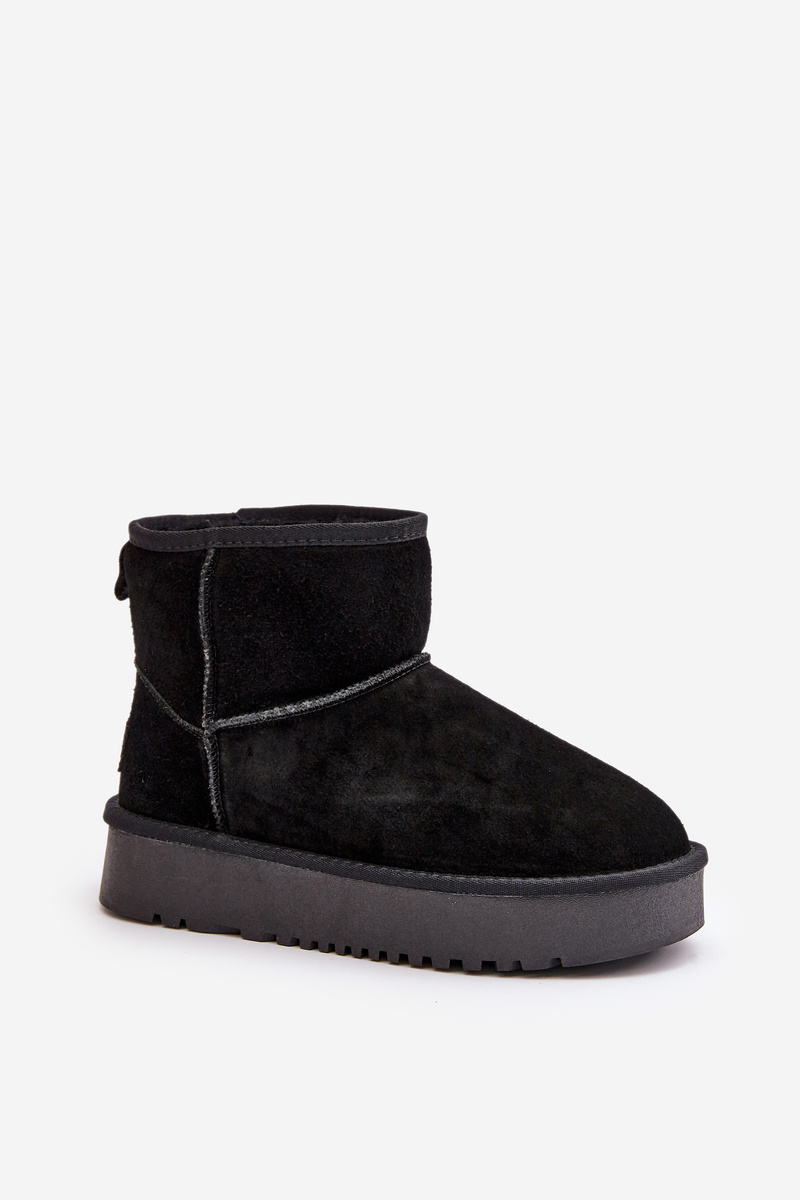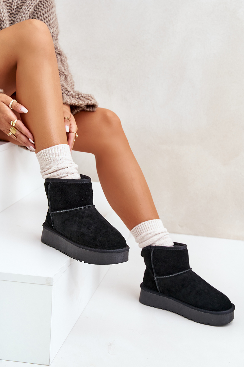 Skórzane Zamszowe Śniegowce Na Platformie Za Kostkę Czarne Rianaella