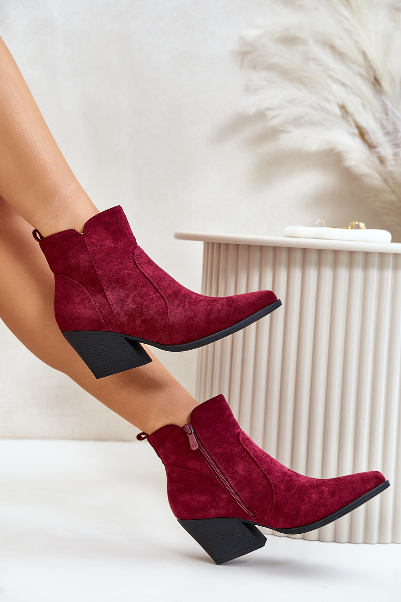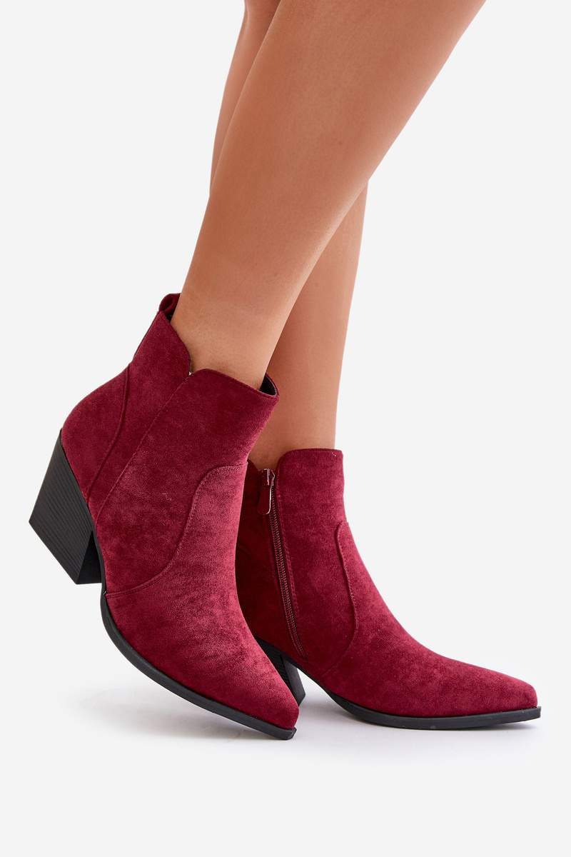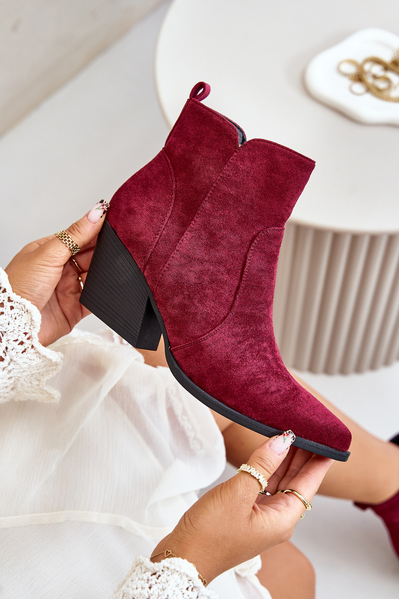 Ocieplane Botki Kowbojki Eko Zamszowe Na Zamek Bordowe Virtris