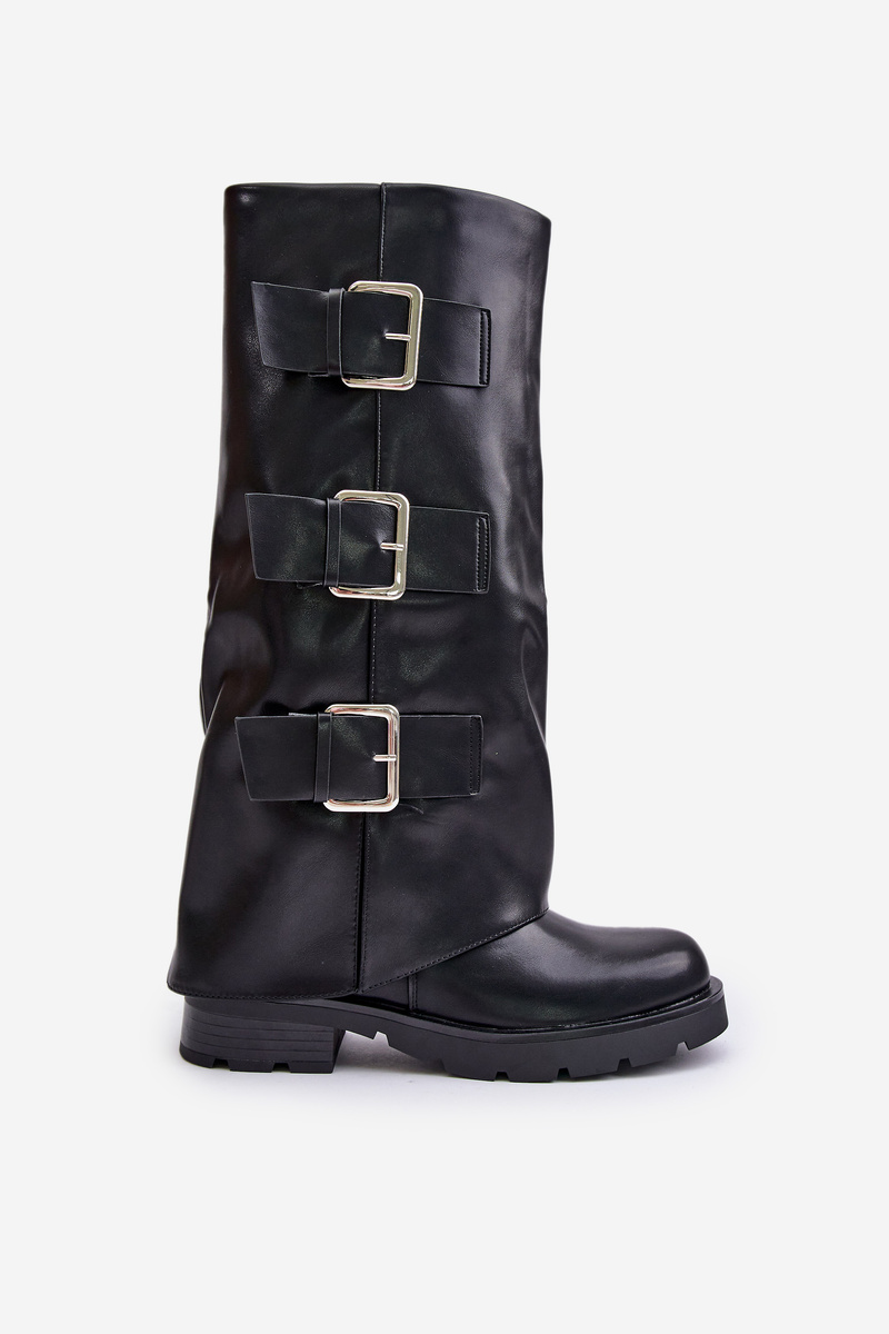 Ocieplane Kozaki Z Wywiniętą Cholewką I Klamrami Czarne Cialetta