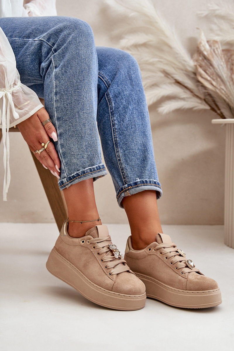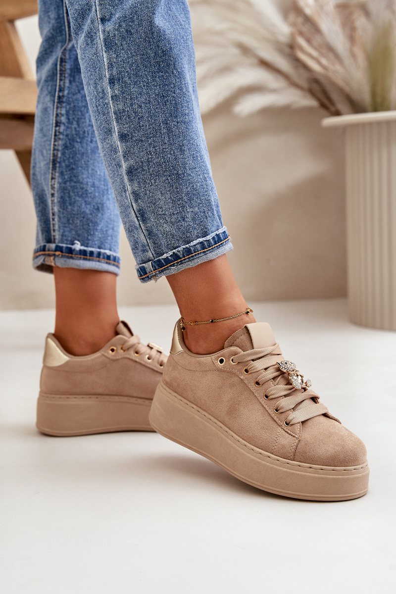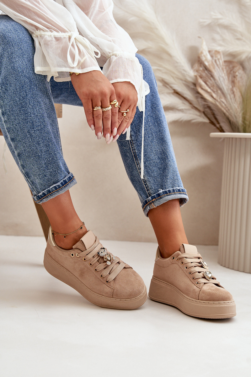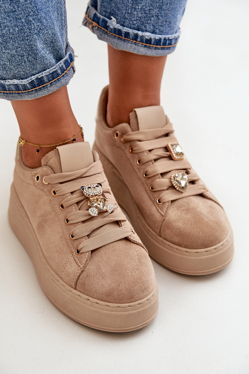 Sneakersy Damskie Na Platformie Z Misiem Beżowe Vailina