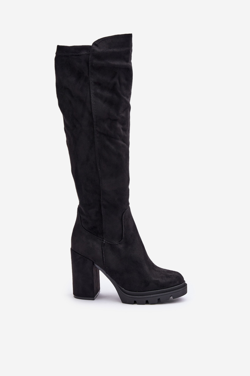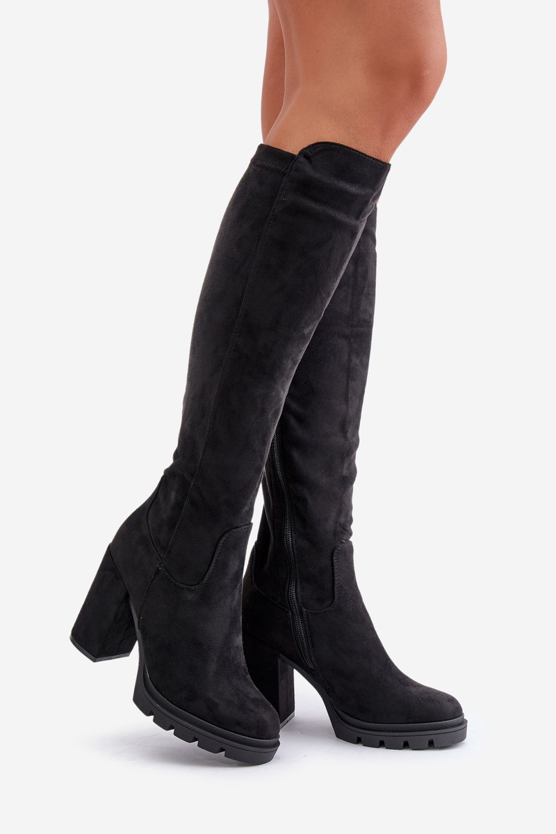 Ocieplane Kozaki Damskie Na Słupku Eko Zamszowe Czarne Tirisha