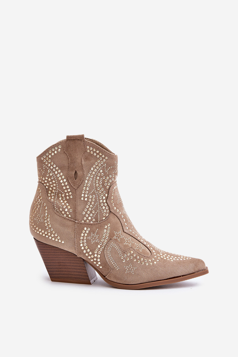 Zdobione Botki Kowbojki Na Obcasie Beżowe Kaivina