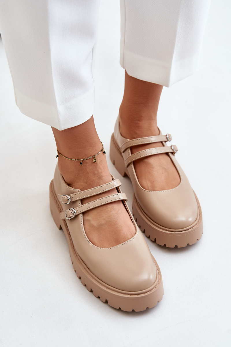 Damskie Półbuty Z Paskami Beżowe Rialuna
