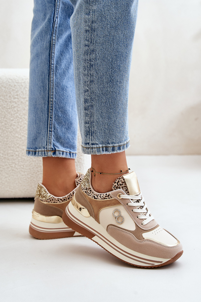 Sneakersy Damskie Na Platformie Beżowe Debizia