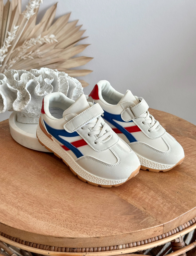 Sneakersy dziecięce wykonane z eko skóry. Osadzone zostały na platformie. Model ten posiada gumki imitujące sznurówki oraz zapinanie na rzep. Miękka wkładka z pianki, która dodatkowo jest pokryta materiałem zapewni wygodę na każdym kroku. Idealnie sprawdzą się podczas zabaw na świeżym powietrzu! Przy wyborze rozmiaru prosimy sugerować się tabelą rozmiarów.