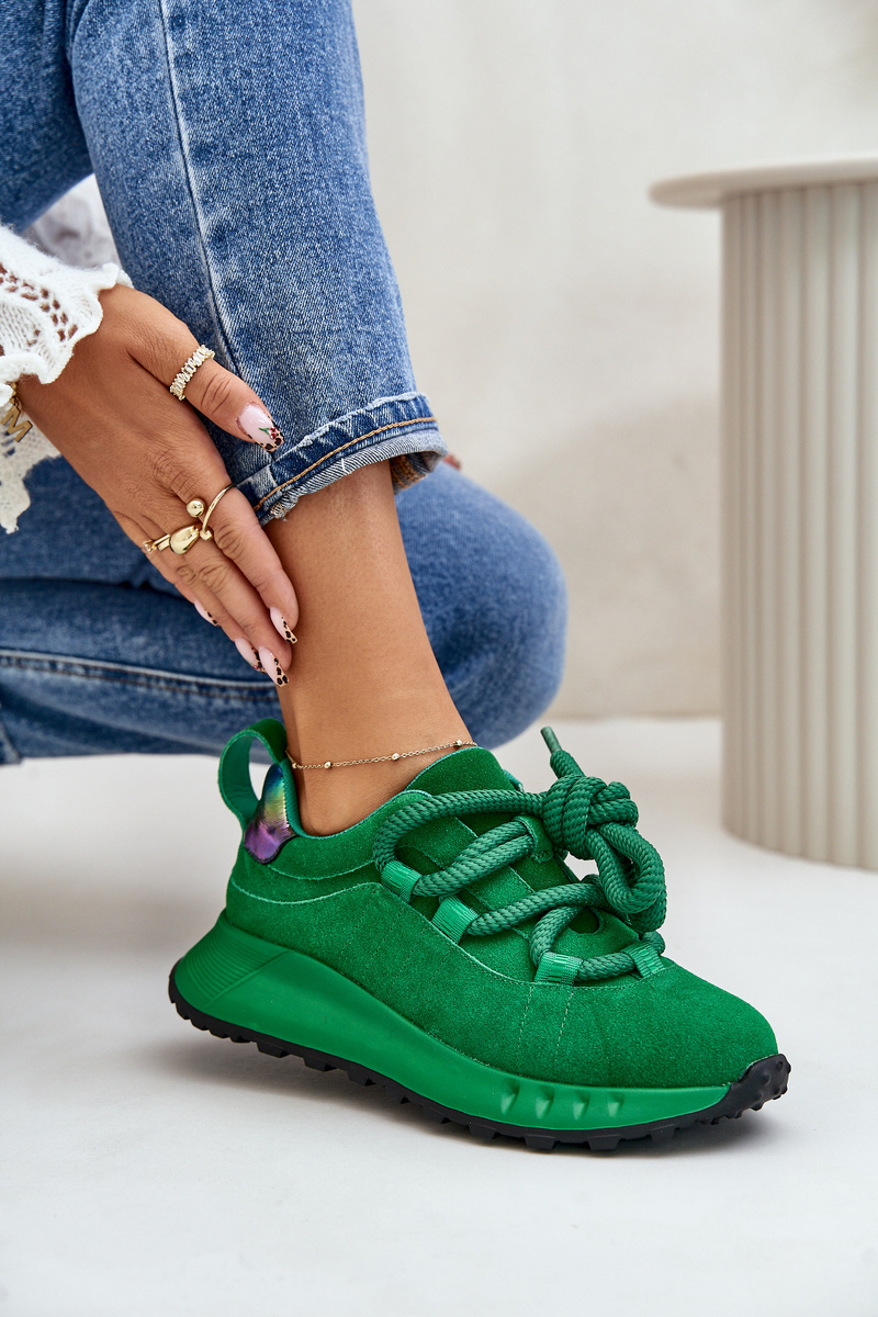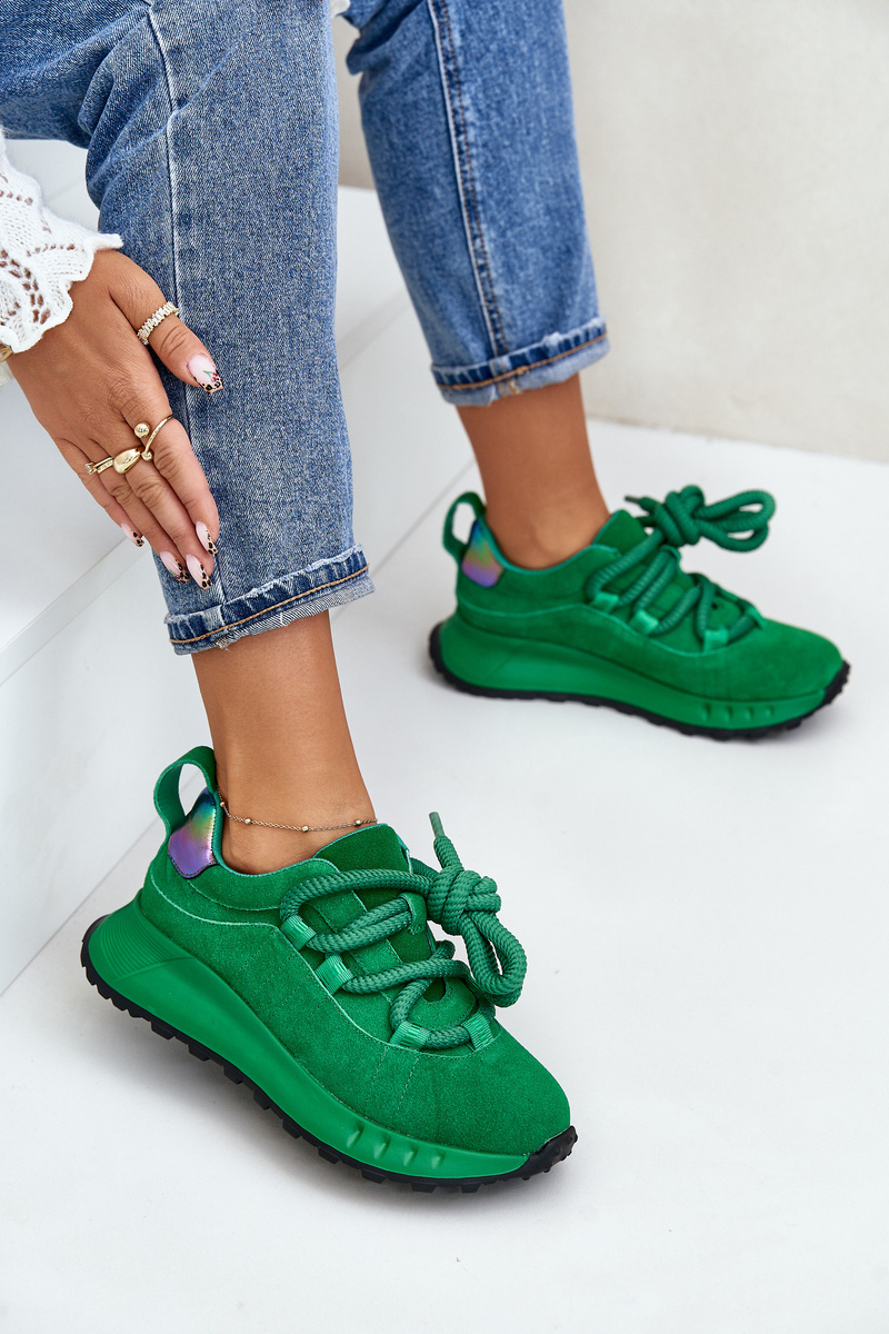 Zamszowe Sneakersy Damskie Z Grubym Sznurowaniem Artiker 55C0099 Zielone