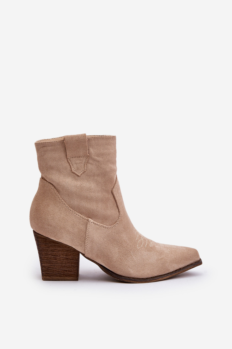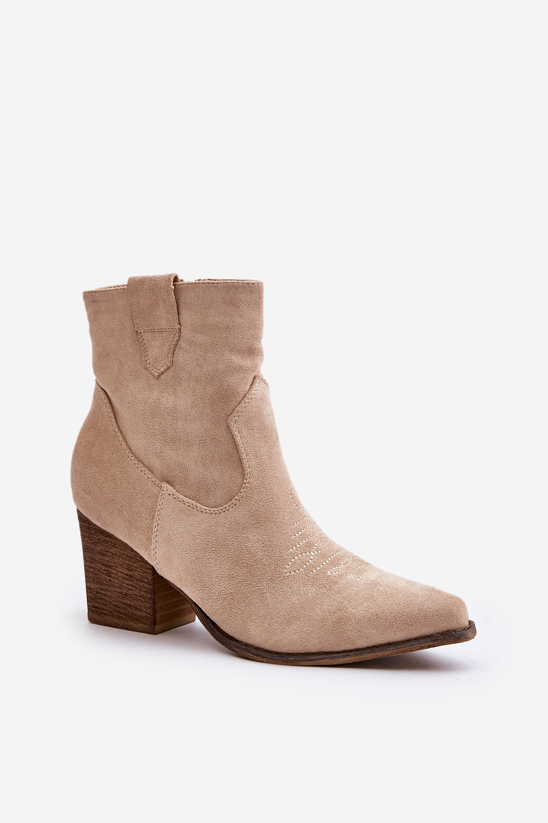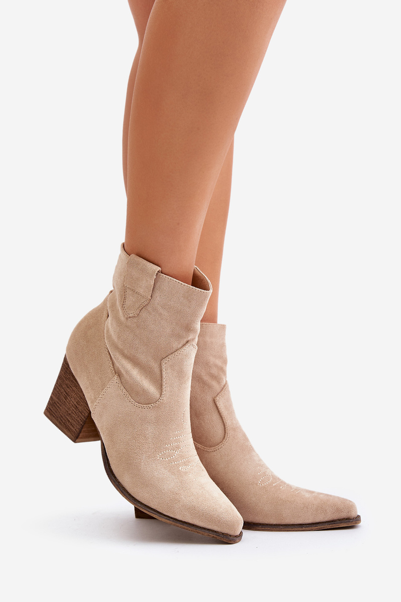 Botki Kowbojki Na Słupku Eko Zamszowe Jasnobeżowe Belorinae