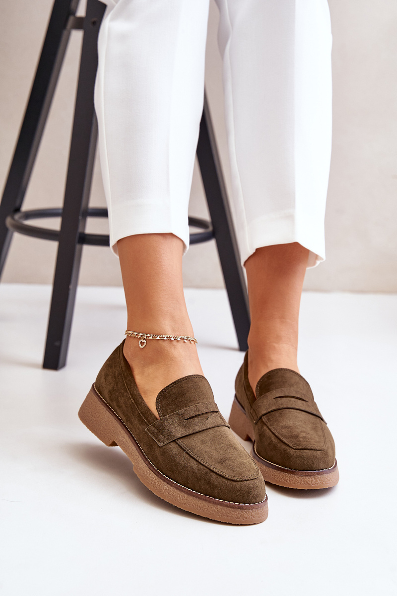 Klasyczne Mokasyny Damskie Z Eko Zamszu Ciemnozielone Belania