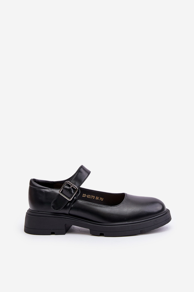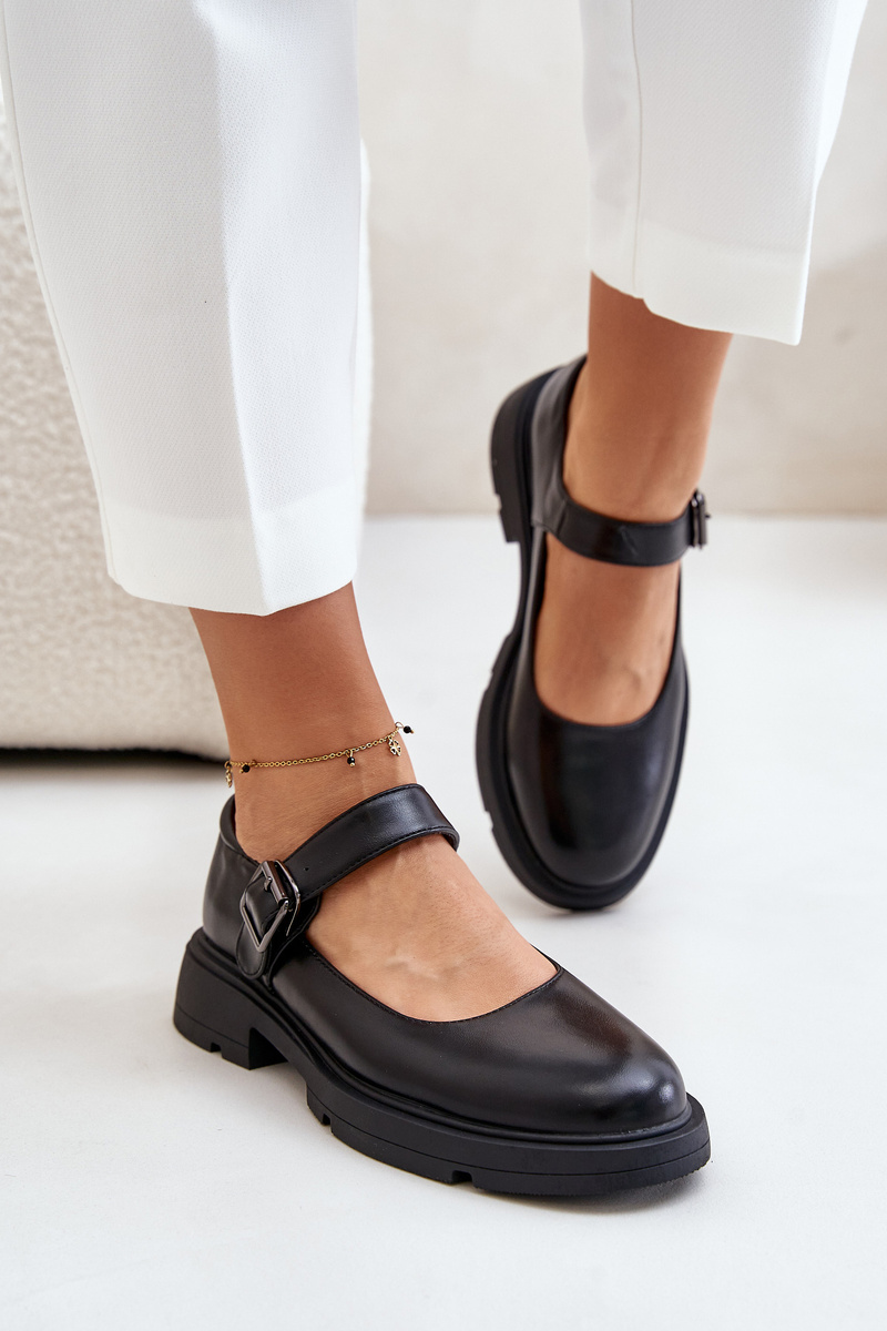 Eko Skórzane Półbuty Damskie Z Paskiem Czarne Vinceza 62179