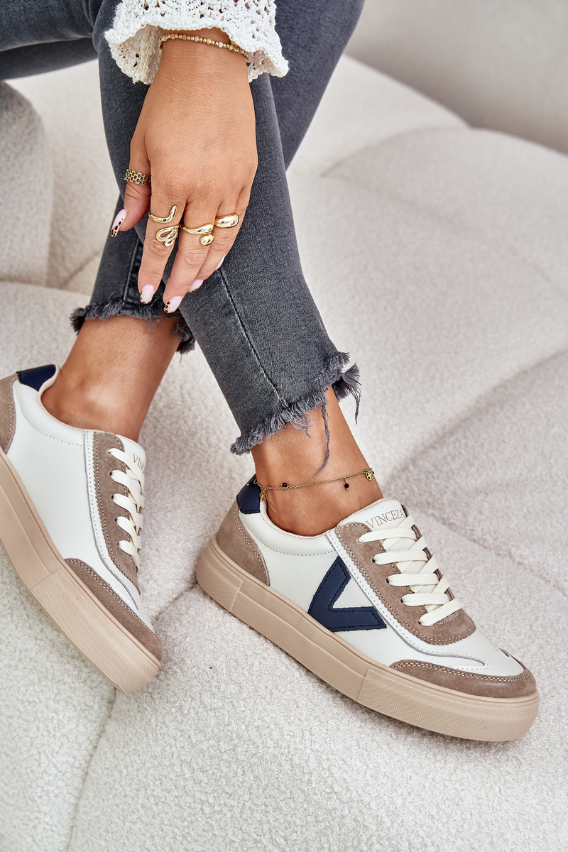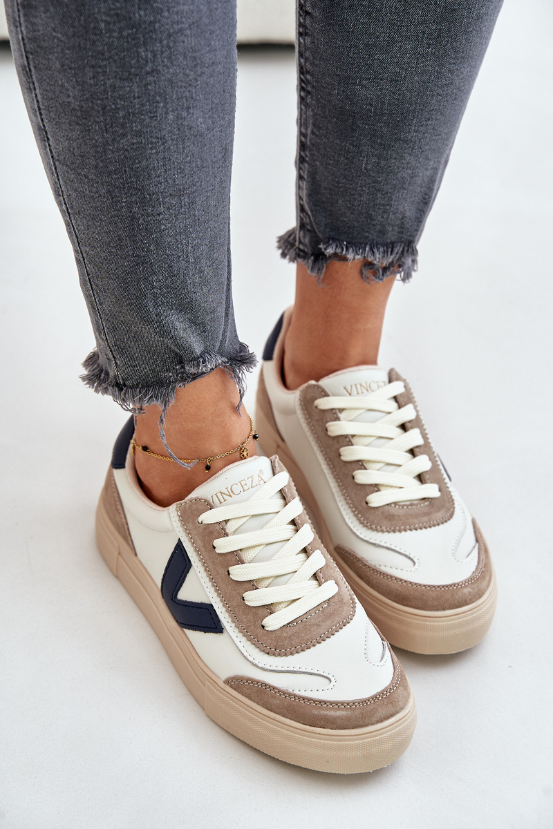 Skórzane Sneakersy Damskie Vinceza 7923 Beżowe