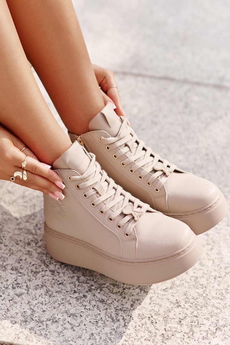 Wysokie Skórzane Sneakersy Damskie Na Platformie Vinceza 66707 Beżowe