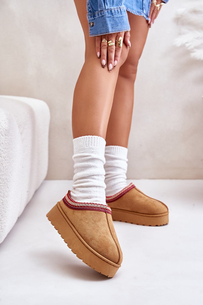 Śniegowce Damskie Na Platformie Ocieplane Futerkiem Camel Remenia
