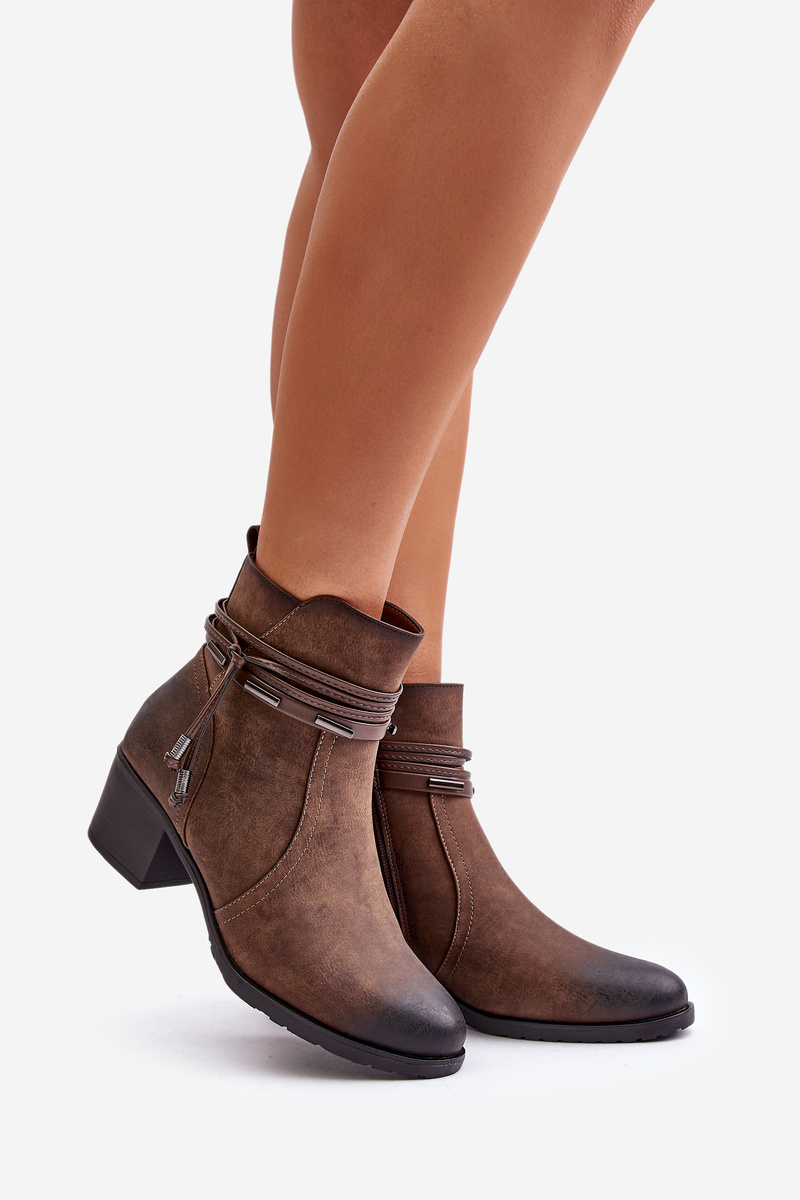 Botki Damskie Na Słupku Ocieplane Brązowe Lobina