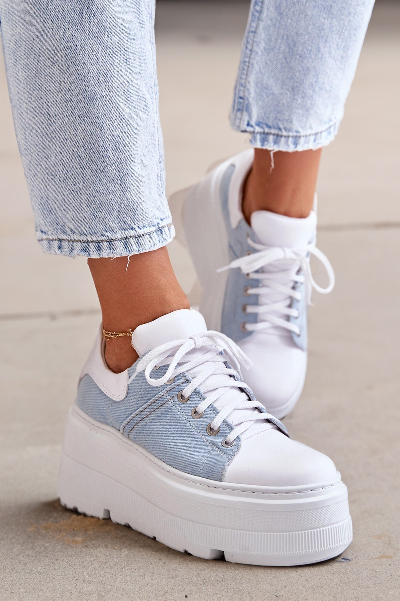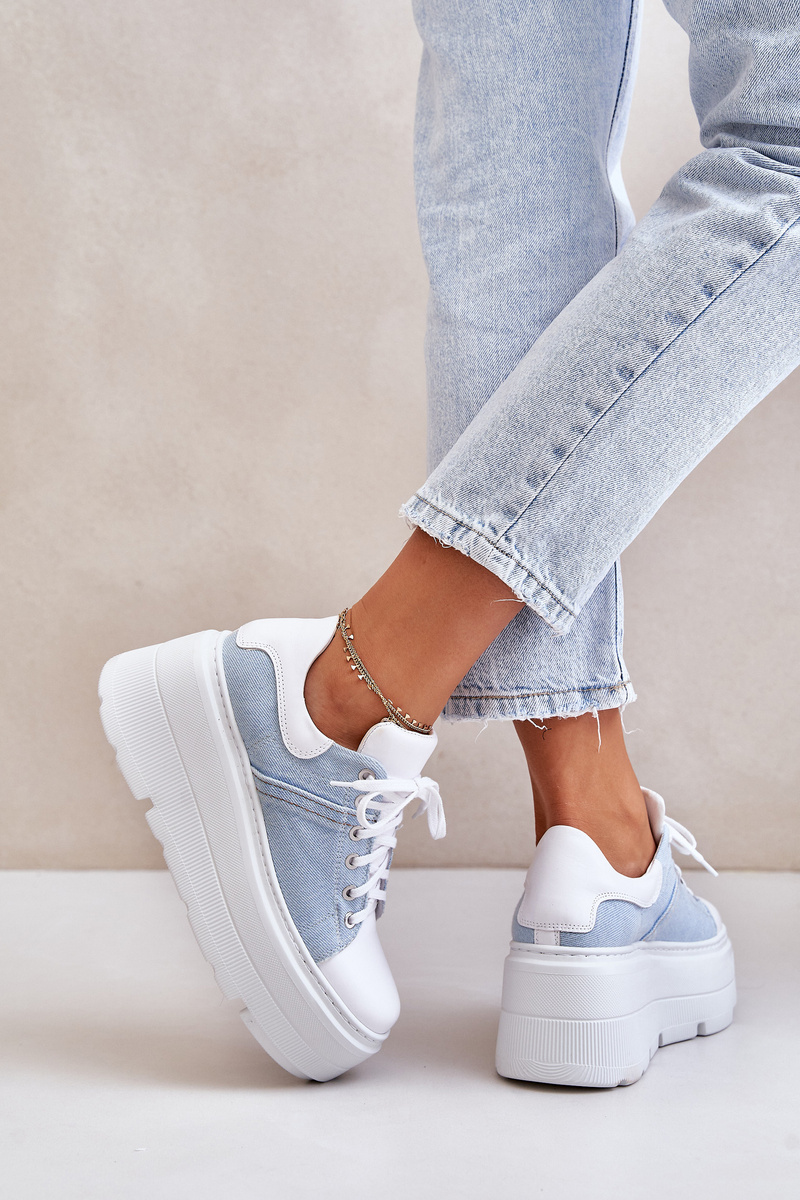 Skórzane Sneakersy Na Masywnej Platformie Jeansowe Lewski 3586 Białe
