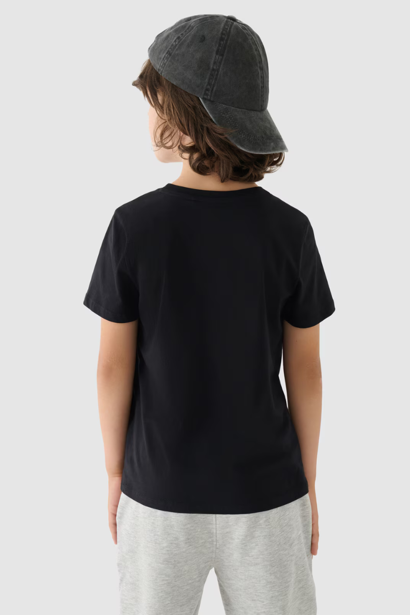 Gładki Bawełniany T-shirt Chłopięcy Regular 4FJWAW24TTSHM1859-20S Czarny