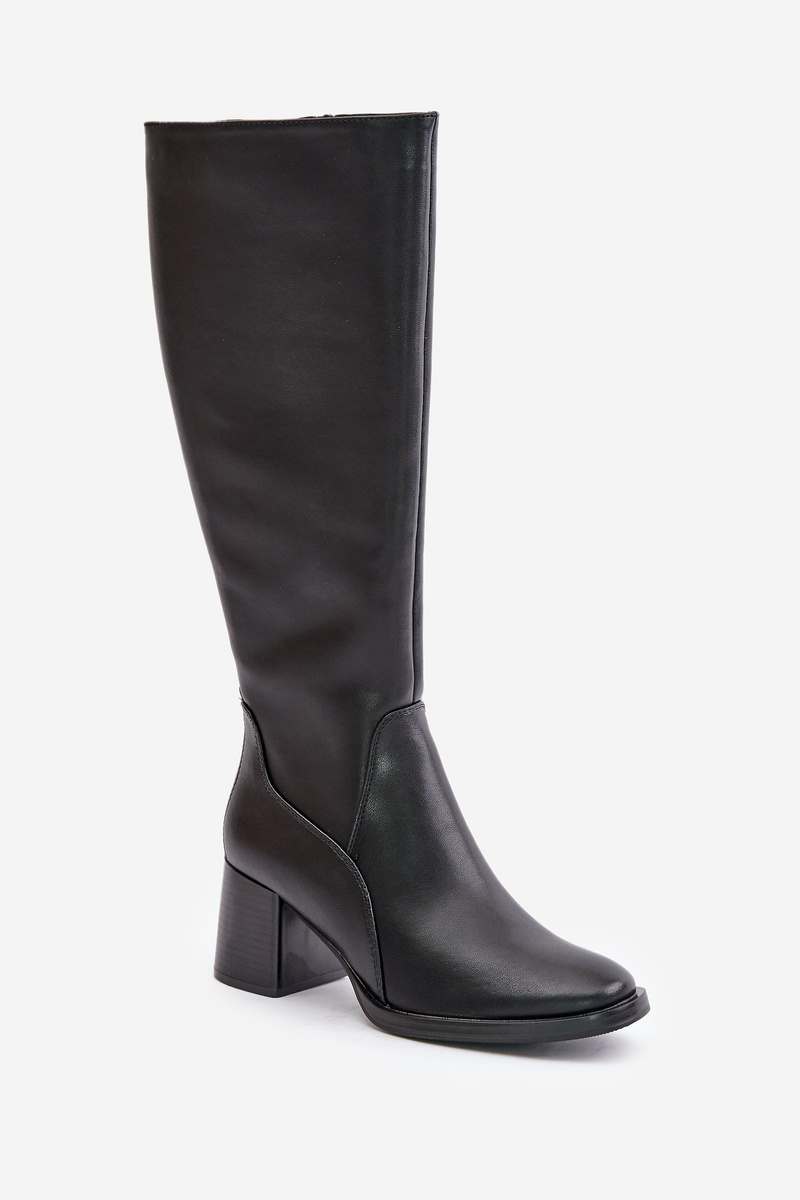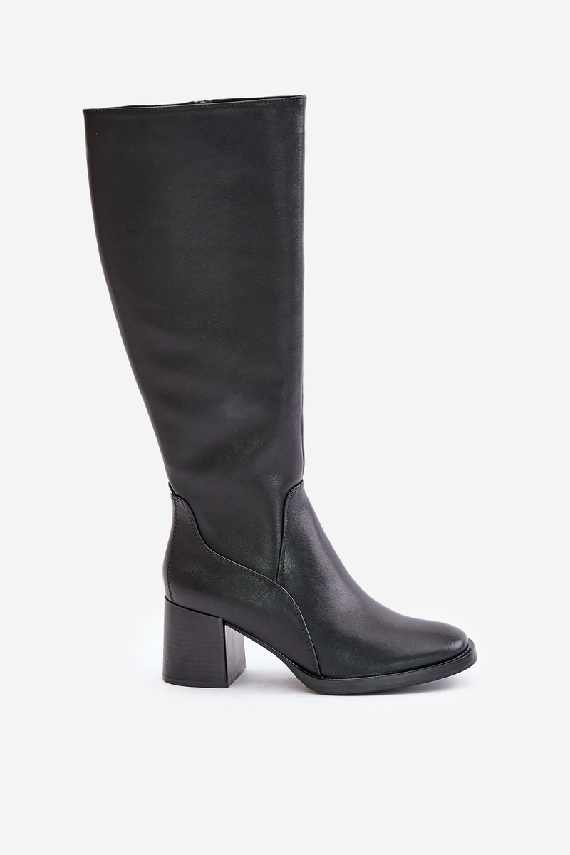 Skórzane Kozaki Na Słupku Przed Kolano Ocieplane Sergio Leone KZ231-S Czarne