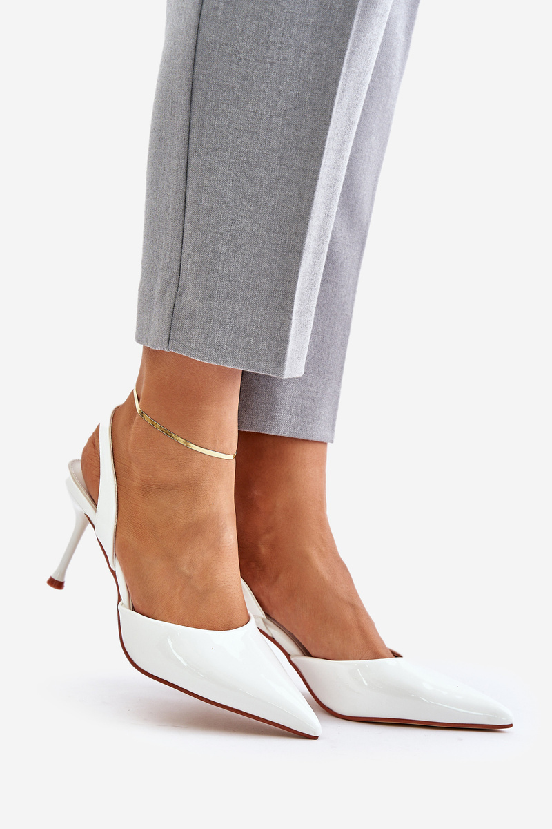 Lakierowane Szpilki Z Odkrytą Piętą Białe Emmizola