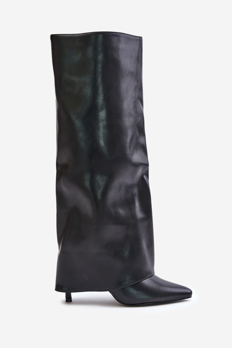 Ocieplane Kozaki Na Szpilce Z Wywiniętą Cholewką Czarne Tamonia