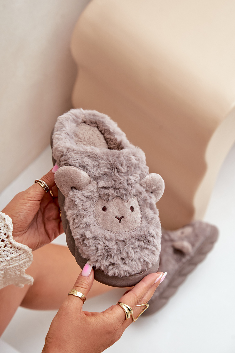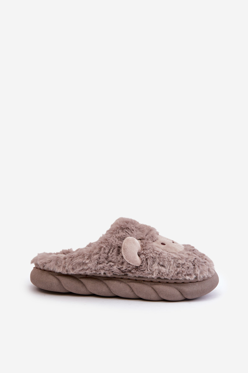Futrzane Kapcie Damskie Z Motywem Owcy Ciemnobeżowe Phaeia