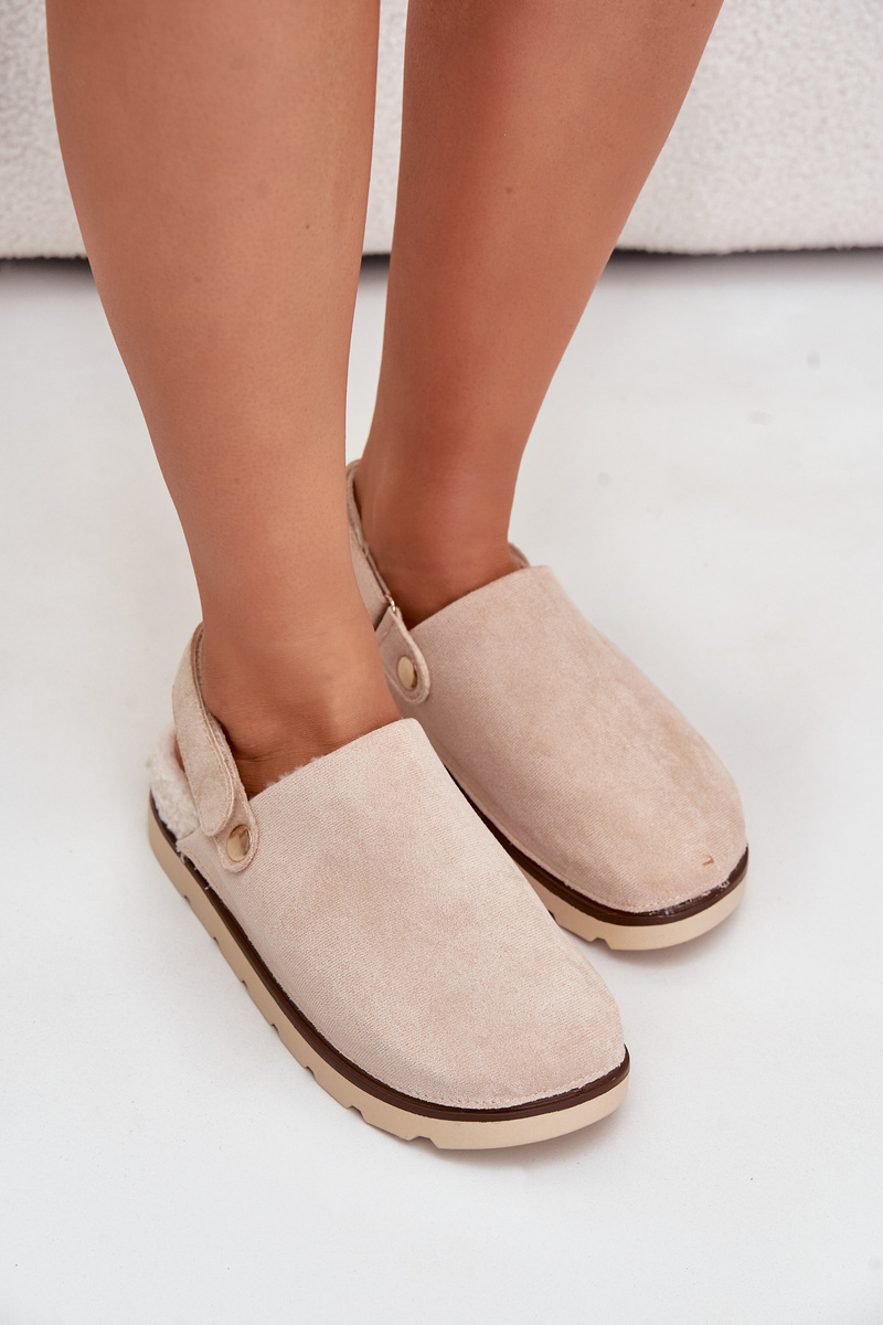 Kapcie Damskie Na Platformie Ocieplane Futerkiem Typu Baranek Beżowe Sanilora