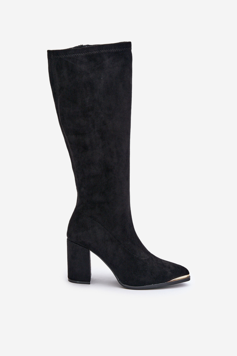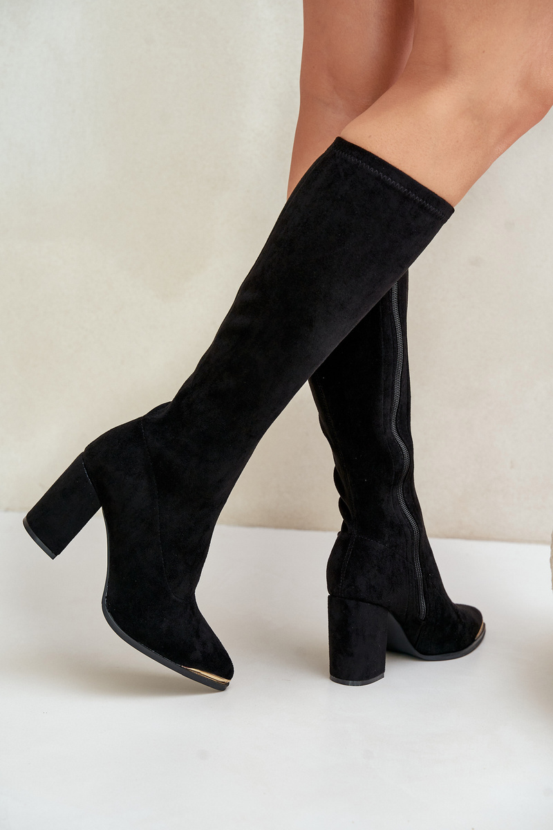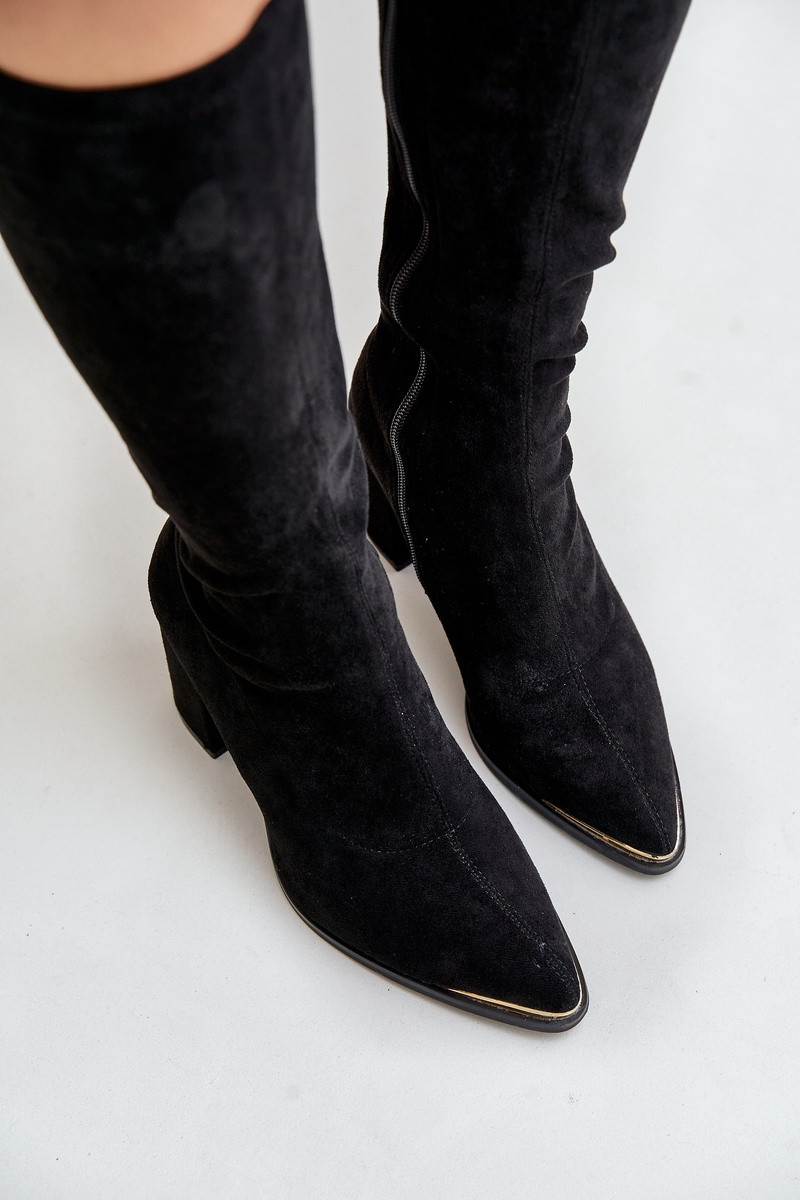 Eko Zamszowe Kozaki Na Słupkowym Obcasie Czarne Batirae