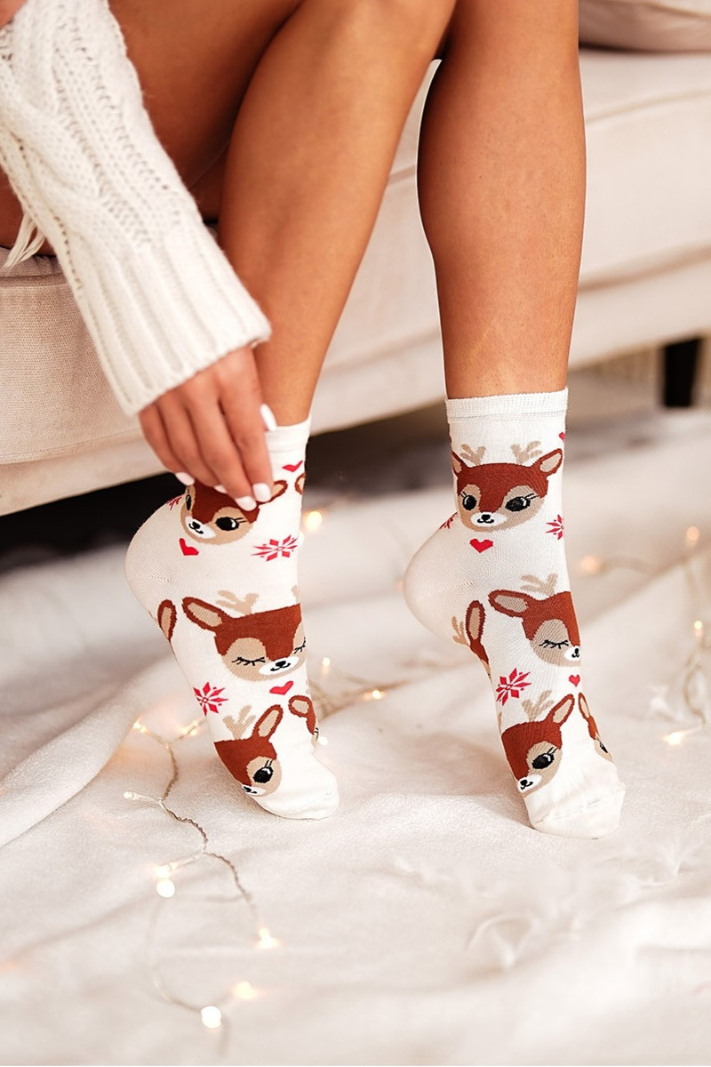 Świąteczne Damskie Skarpetki Renifery Ecru