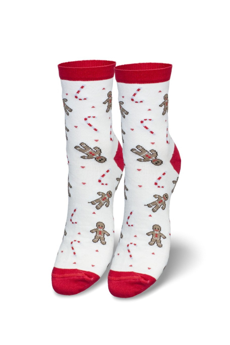 Damskie Świąteczne Skarpetki Ciasteczkowe Ludziki Białe