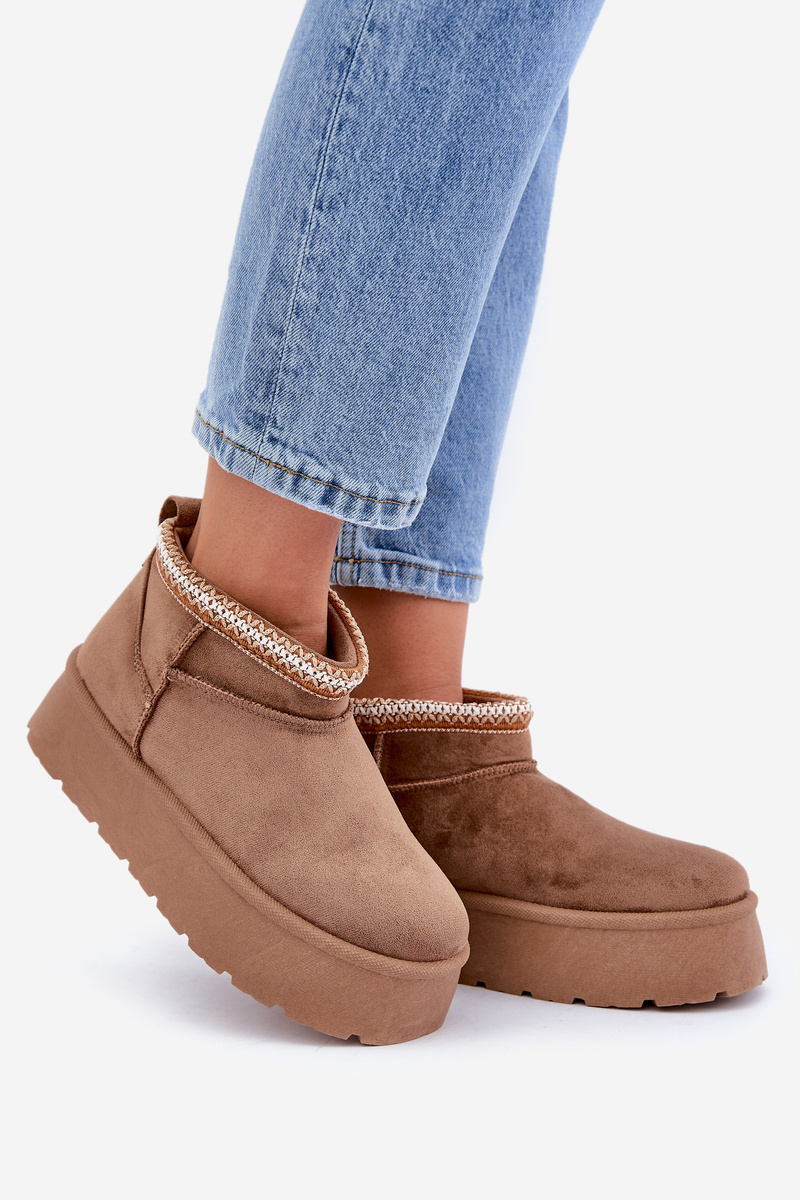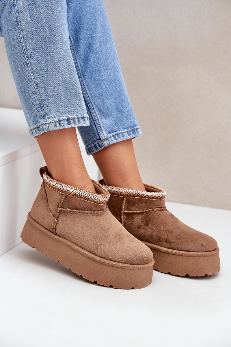Śniegowce Na Platformie Z Ozdobnym Haftem Brązowe Heslania